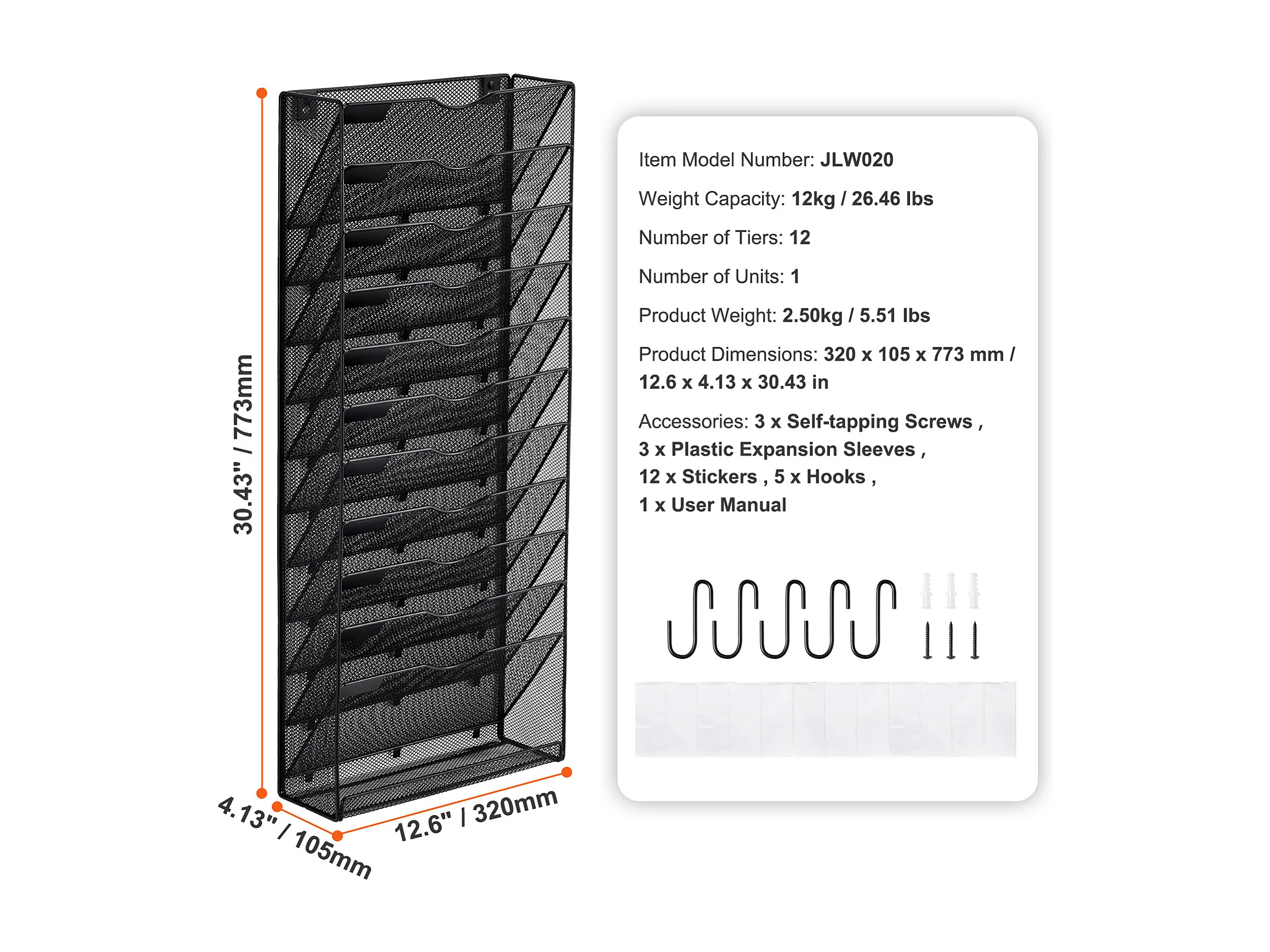 Support Mural SucceBuy pour Dossiers en Maille, 1 Pièce 12 Poches pour Bureau École