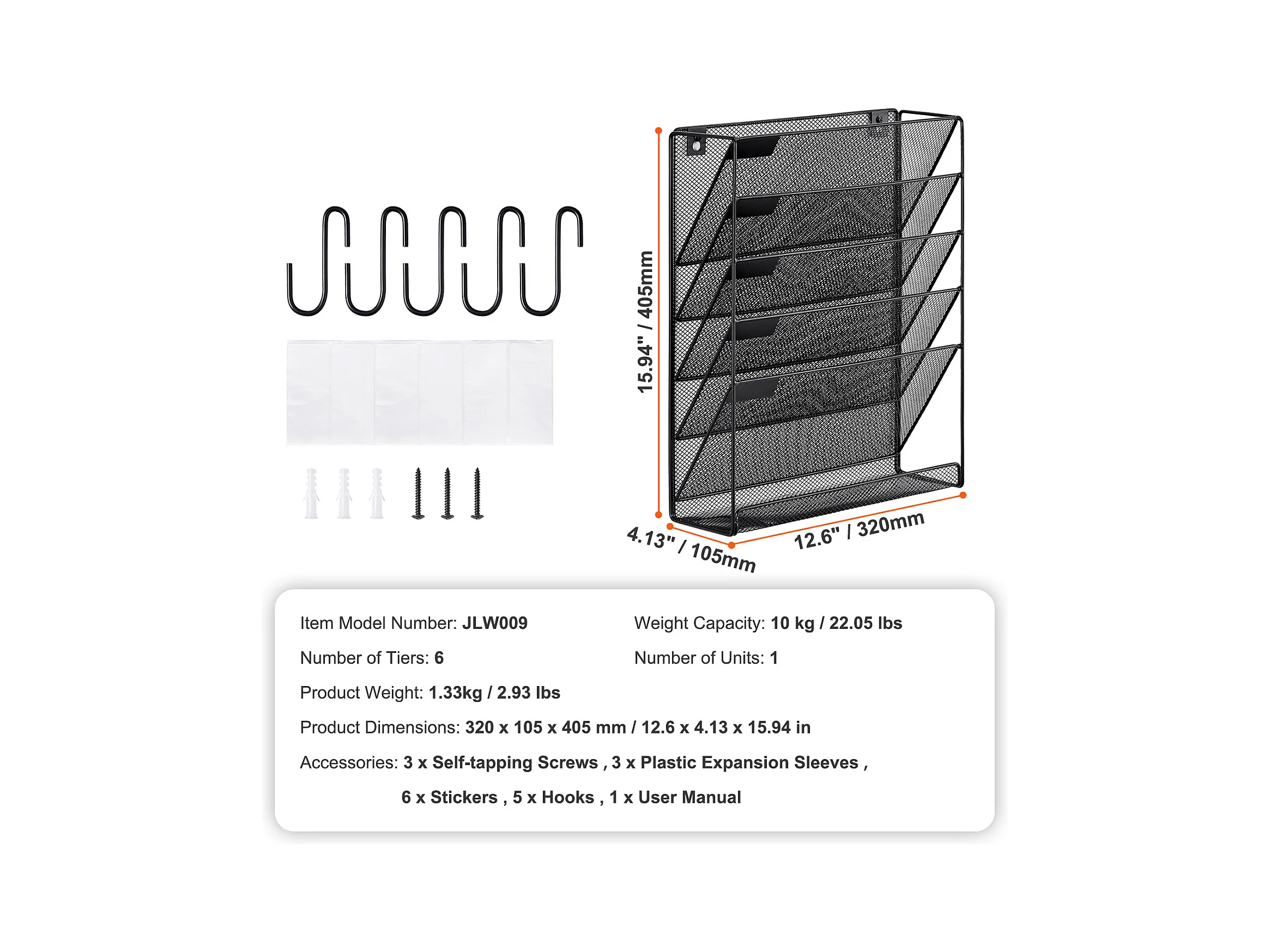Support Mural SucceBuy pour Dossiers, Support Mural en Maille, 1 Pièce, 6 Poches, pour Bureau/École