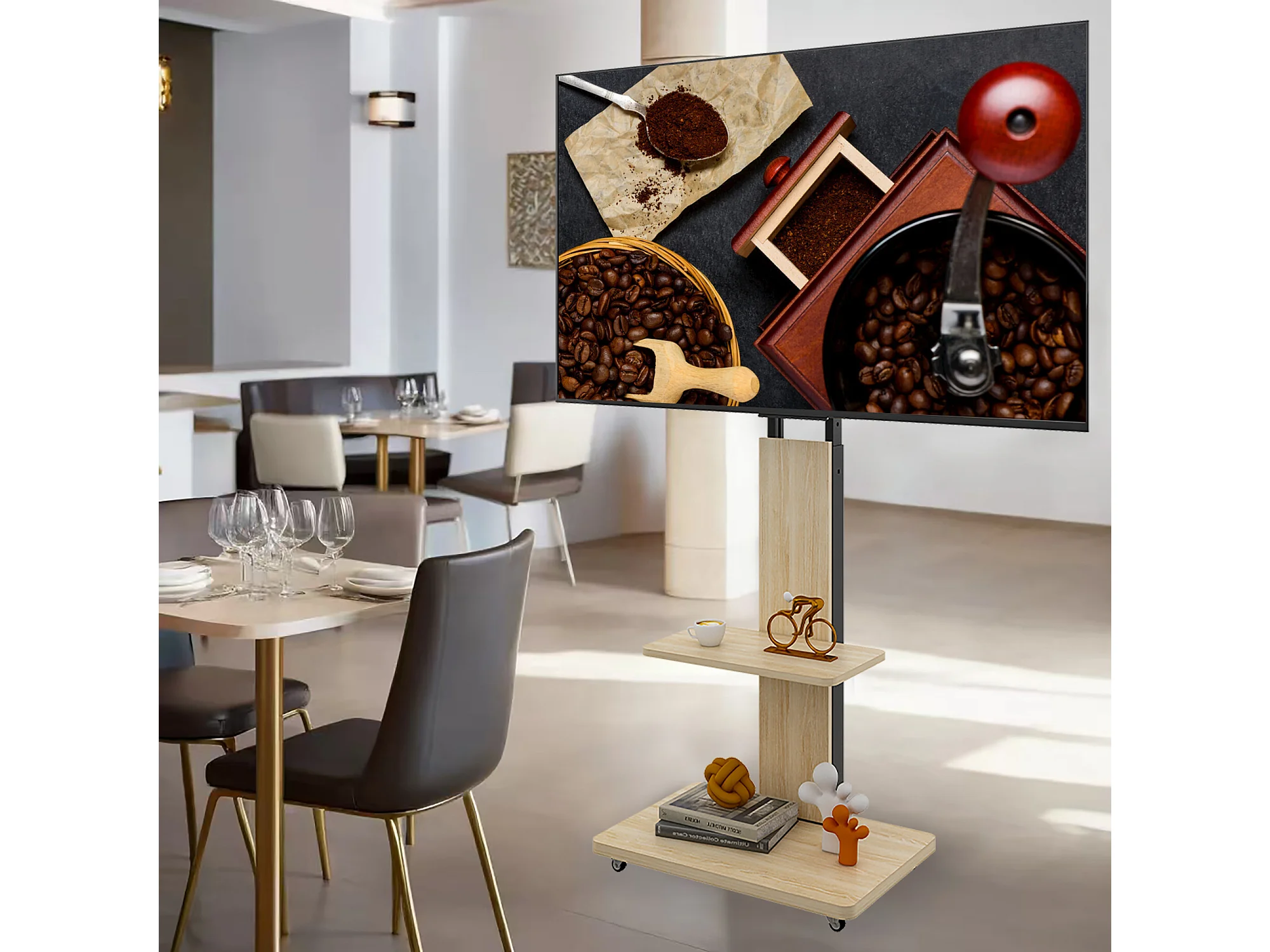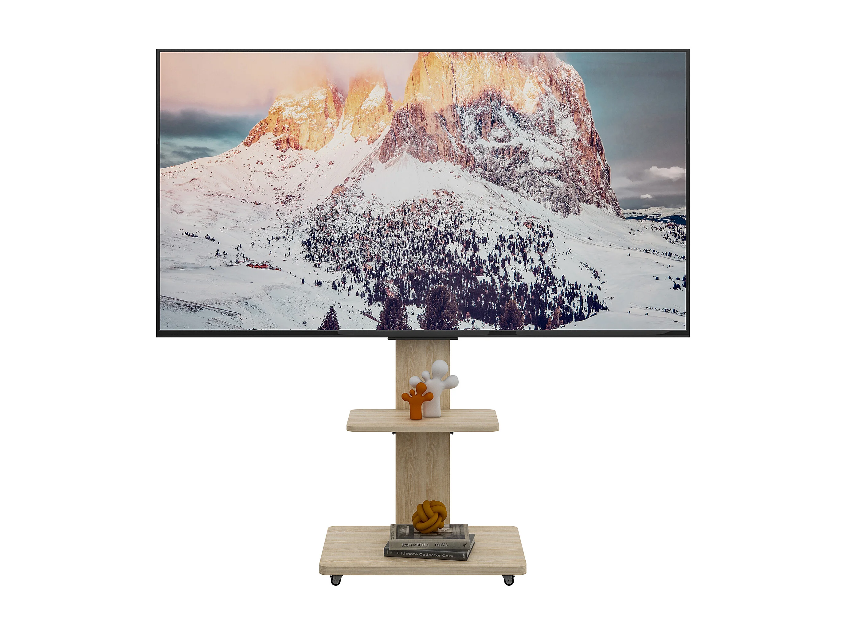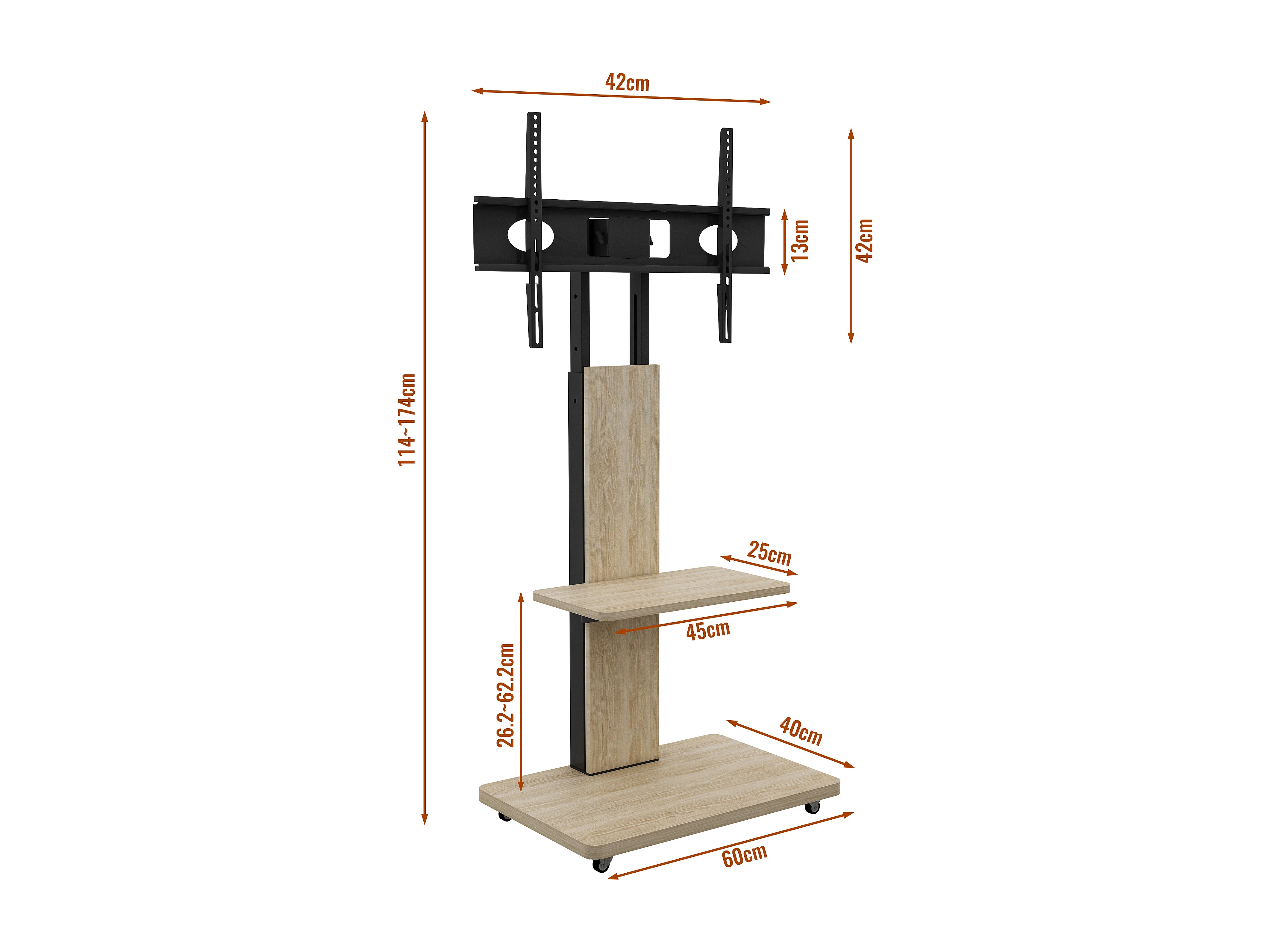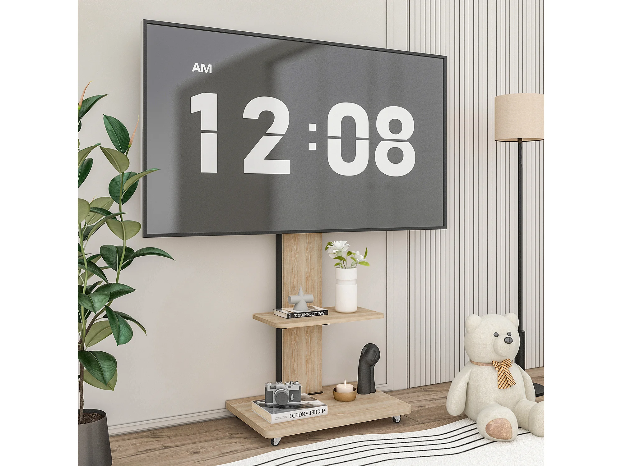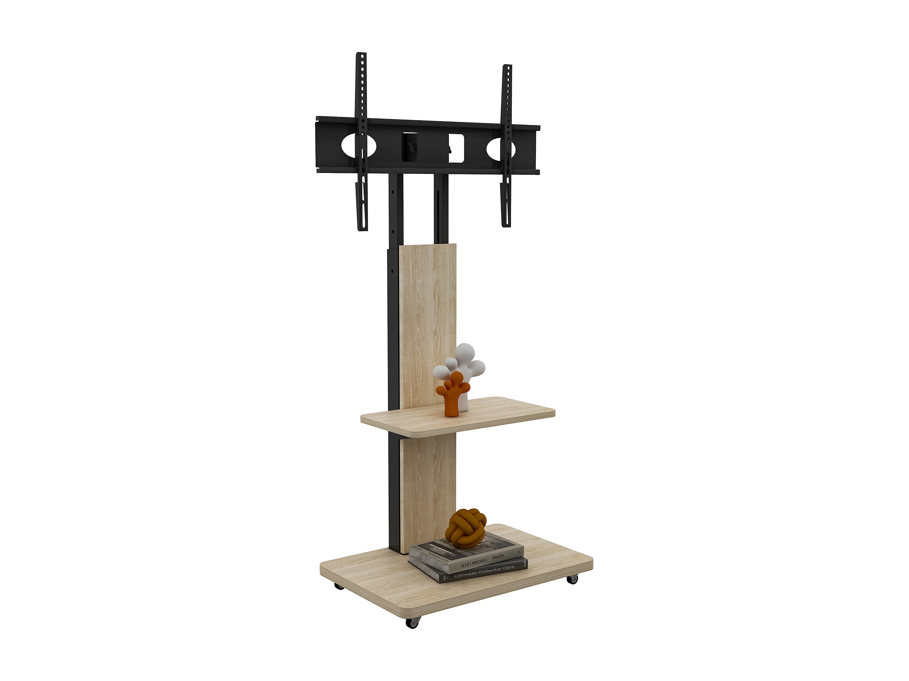 Support TV à roulettes avec réglable en hauteur , MDF et métal - Naturel clair
