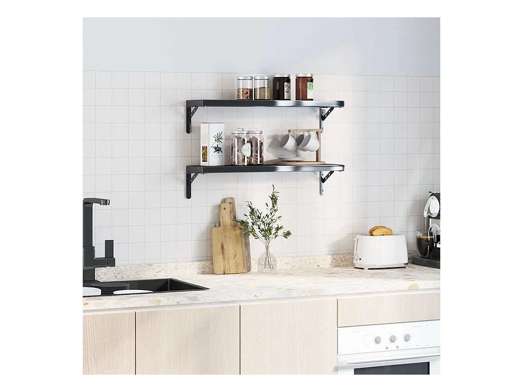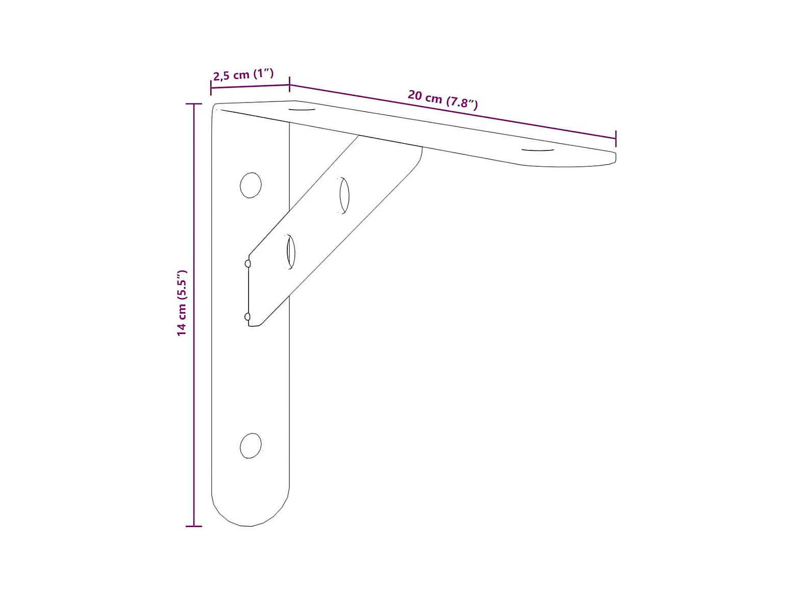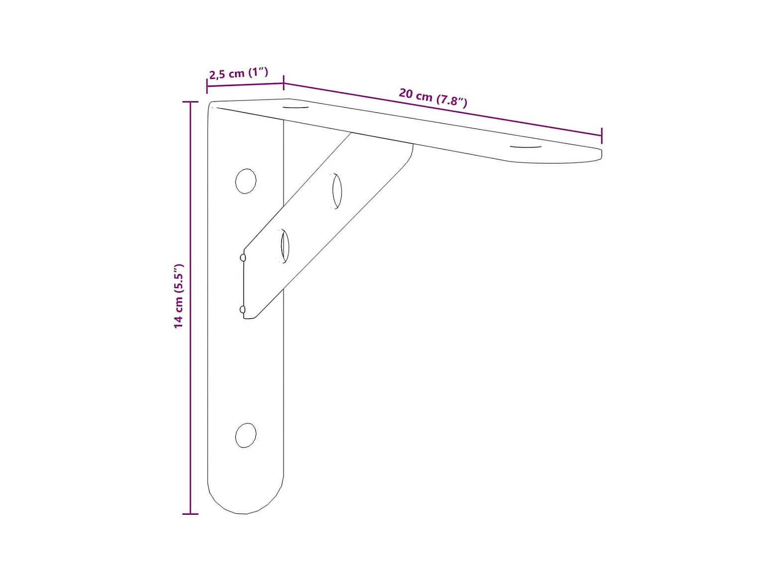 Supports d'étagères 4 pcs 20x2,5x14 cm noir acier inoxydable