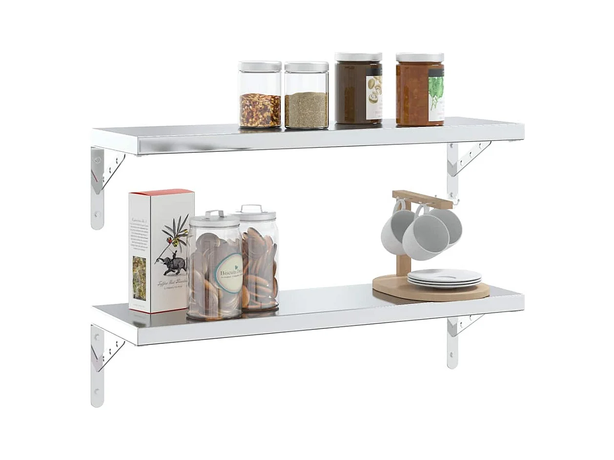 Étagères murales 2 pcs 75x40 cm argenté acier inoxydable