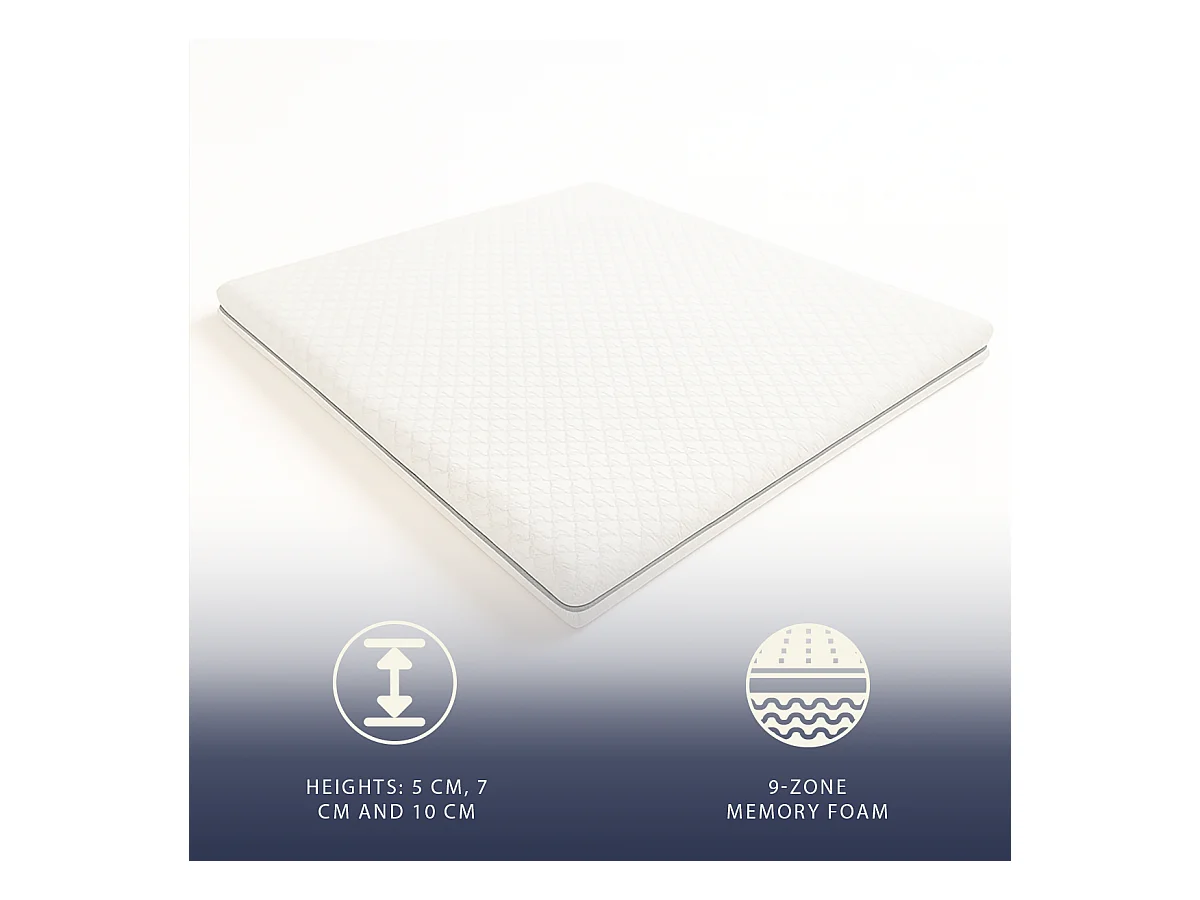 Surmatelas Double Fr 135x190 | Memory 9 Zones | 10 cm | Housse amovible | Made in Italy