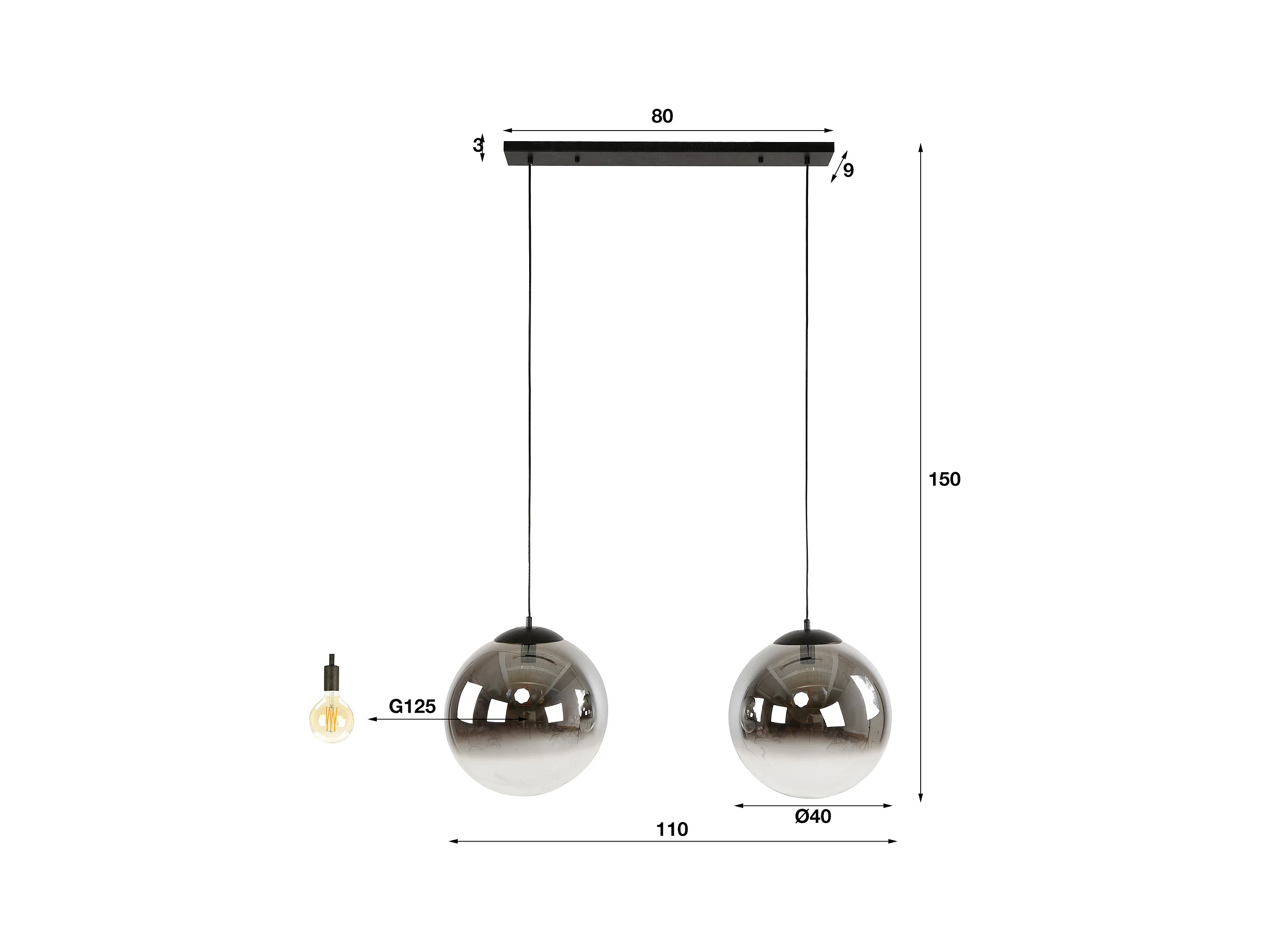 Suspension 4L Cylindre Verre - Noir Artic