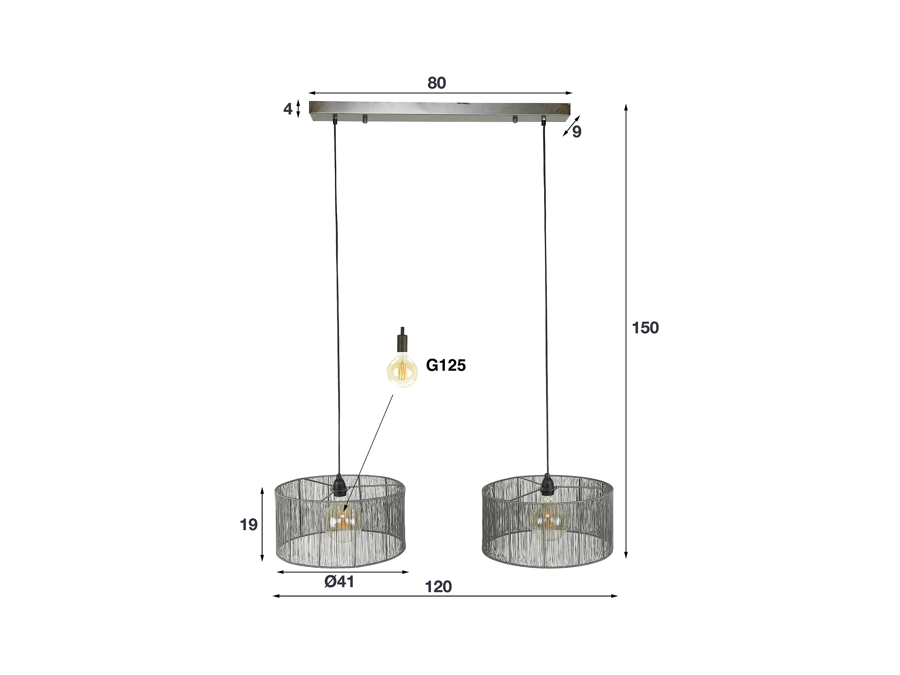 Suspension 2L Stringshade - Métal - Nickel noir - 120x45x150