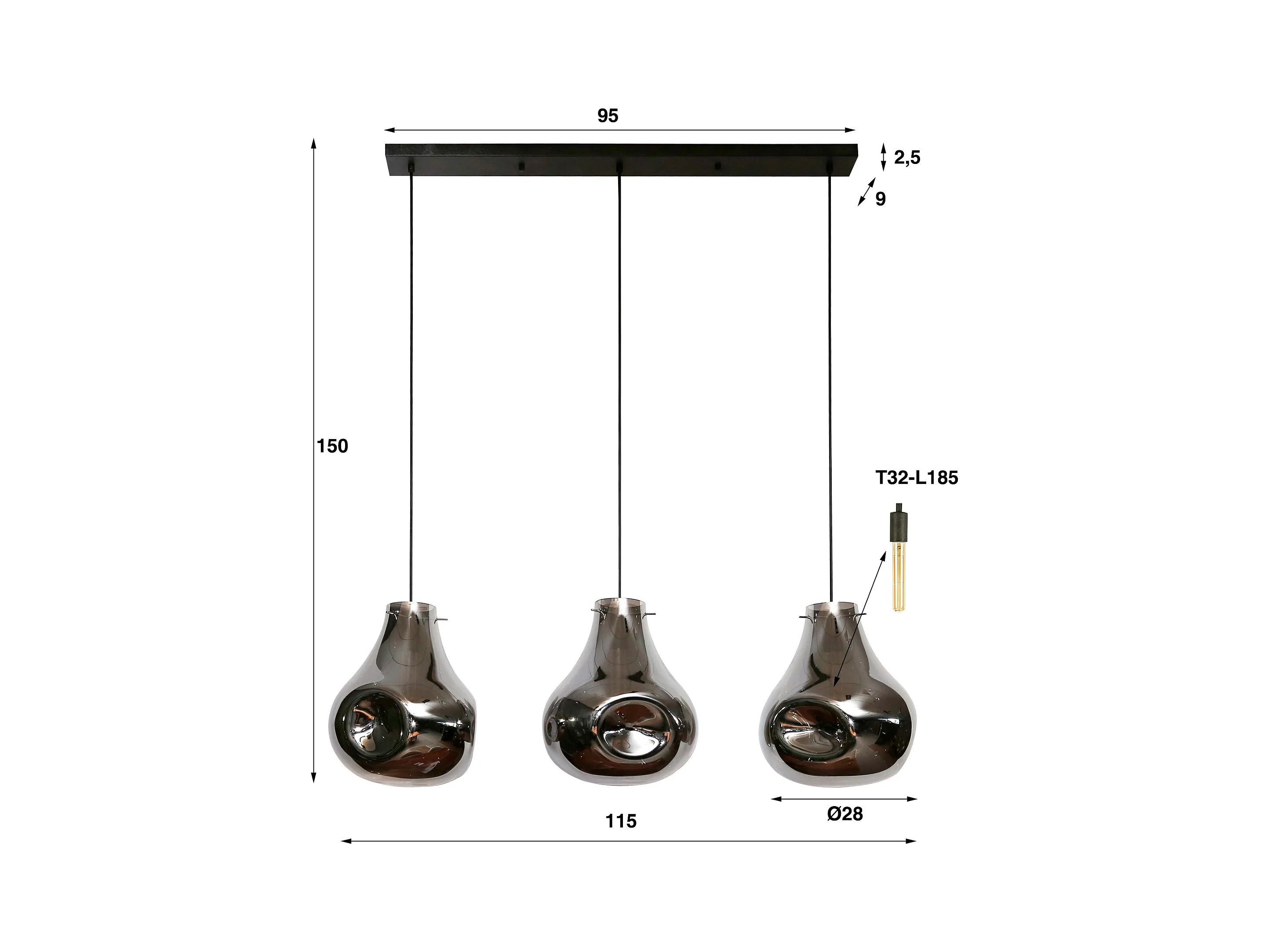 Suspension Mix 3+3 - Verre Tricolore - Noir Arctique