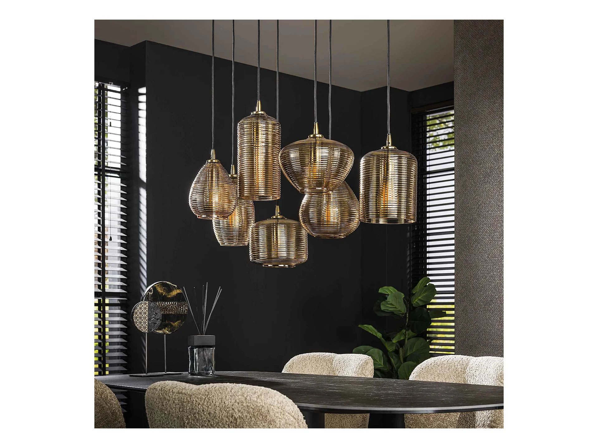 Suspension 4+3 bandes horizontales en verre ambré