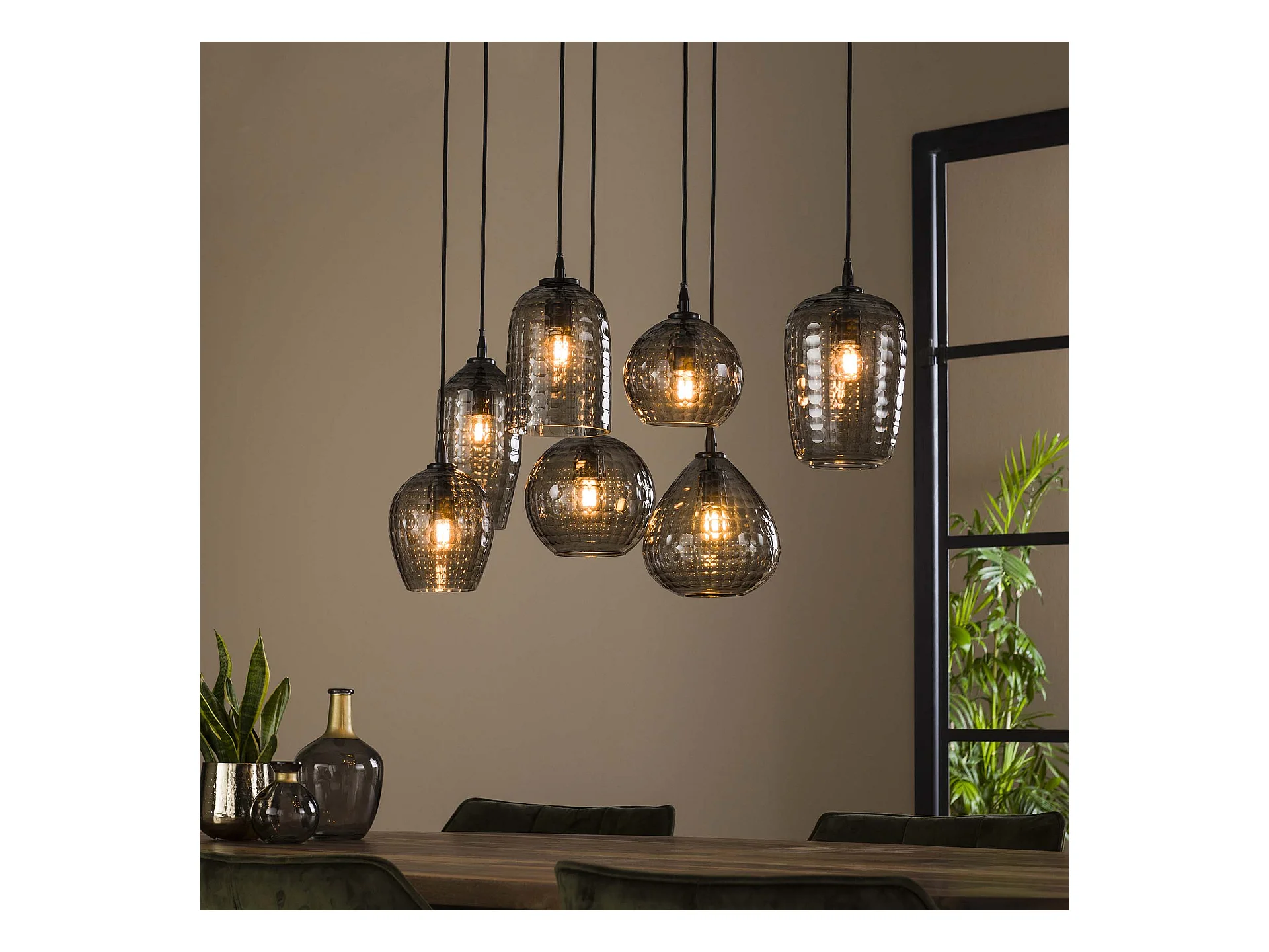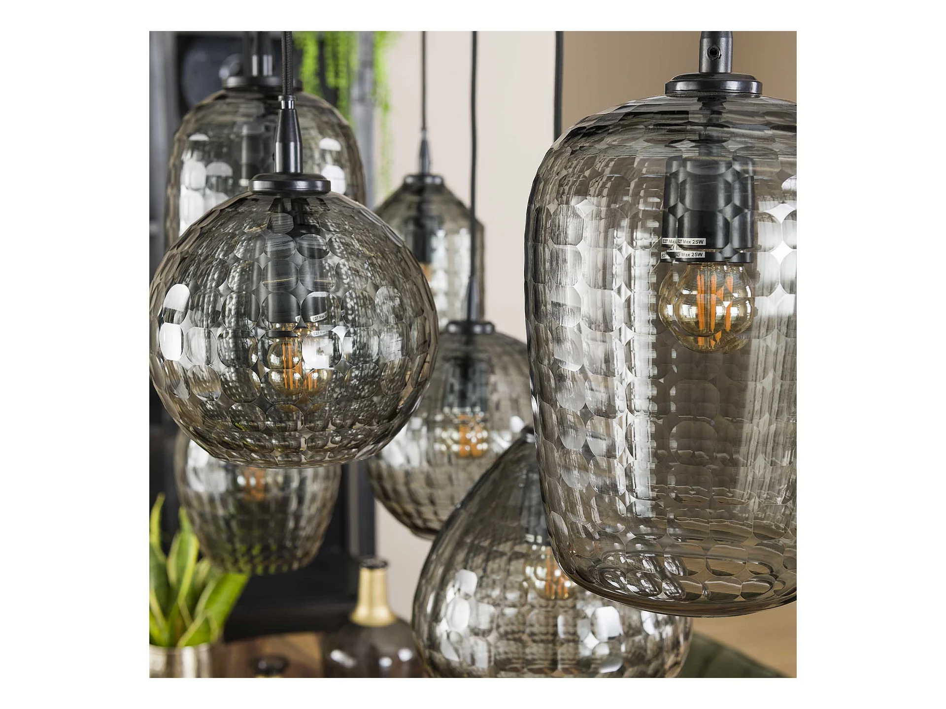 Suspension 4+3 Hexagon Mix - Verre gris fumé