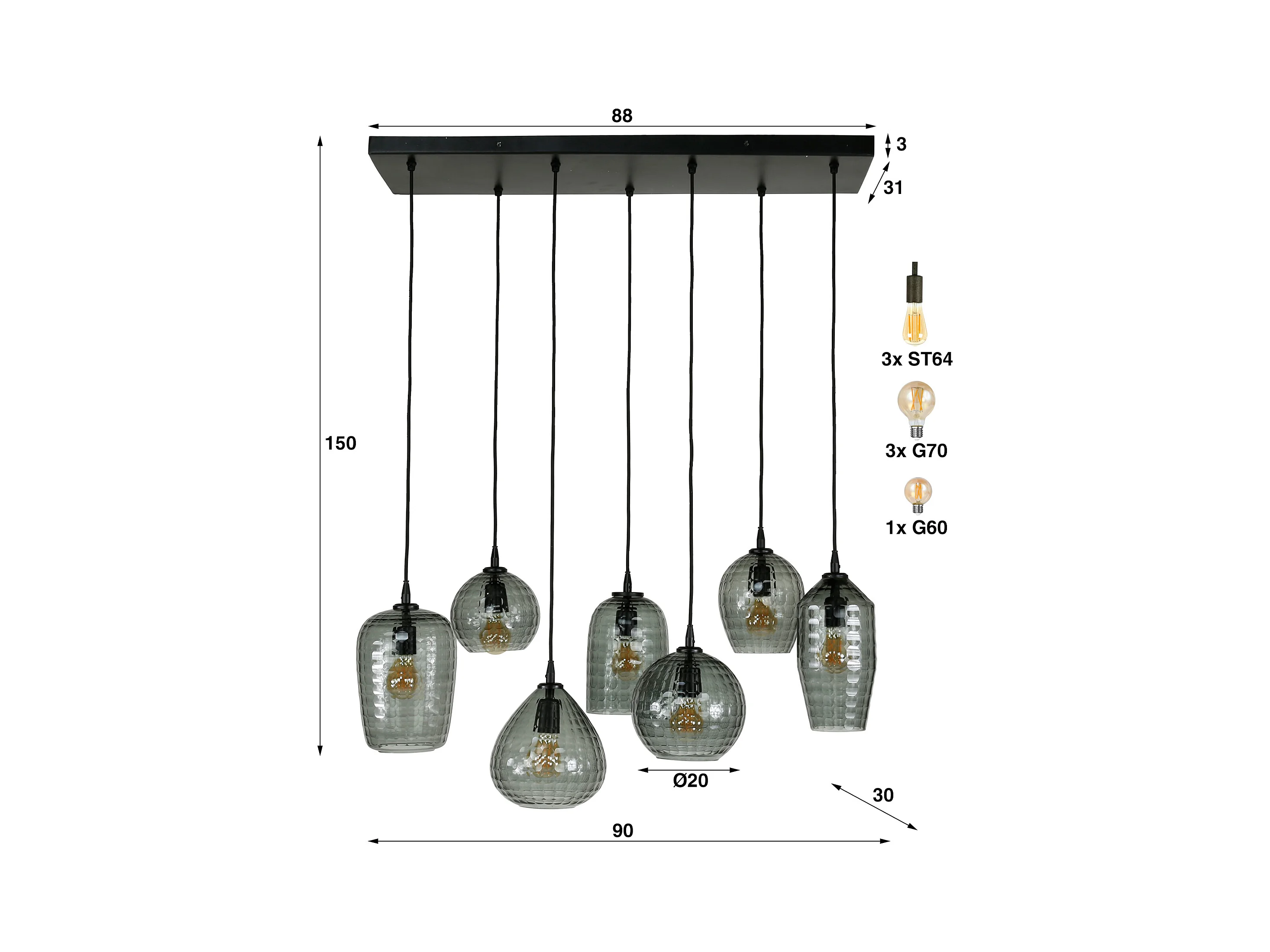 Suspension 5L Mix - À gradins - Verre chromé