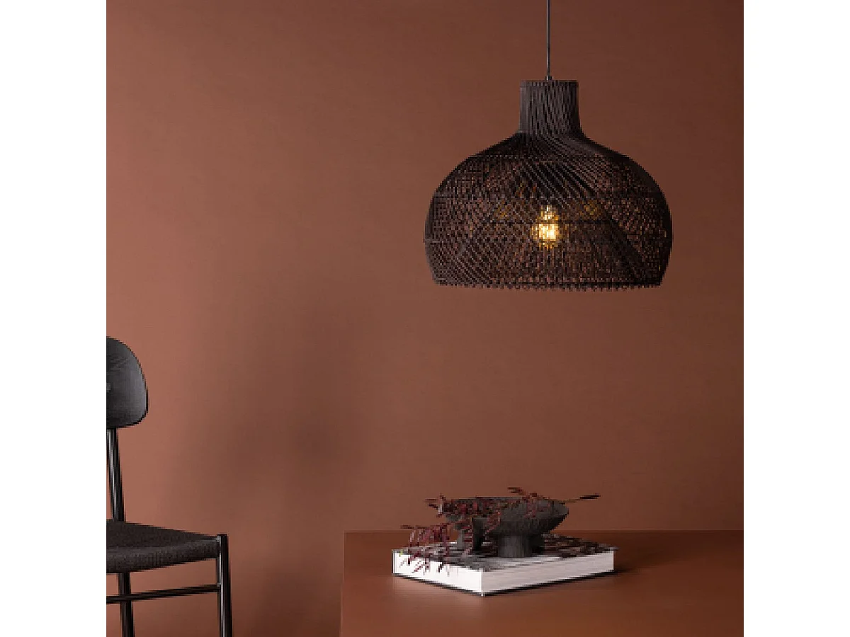 Lampe Suspension en Rotin "Laroche" 45cm Noir