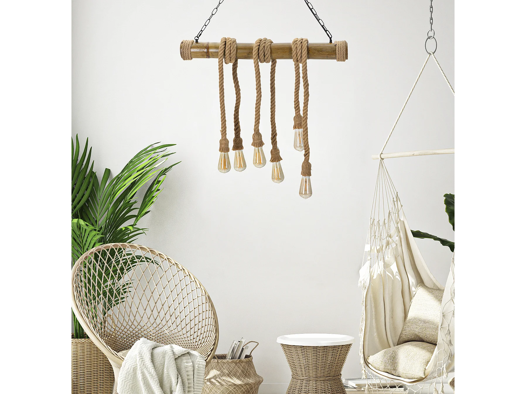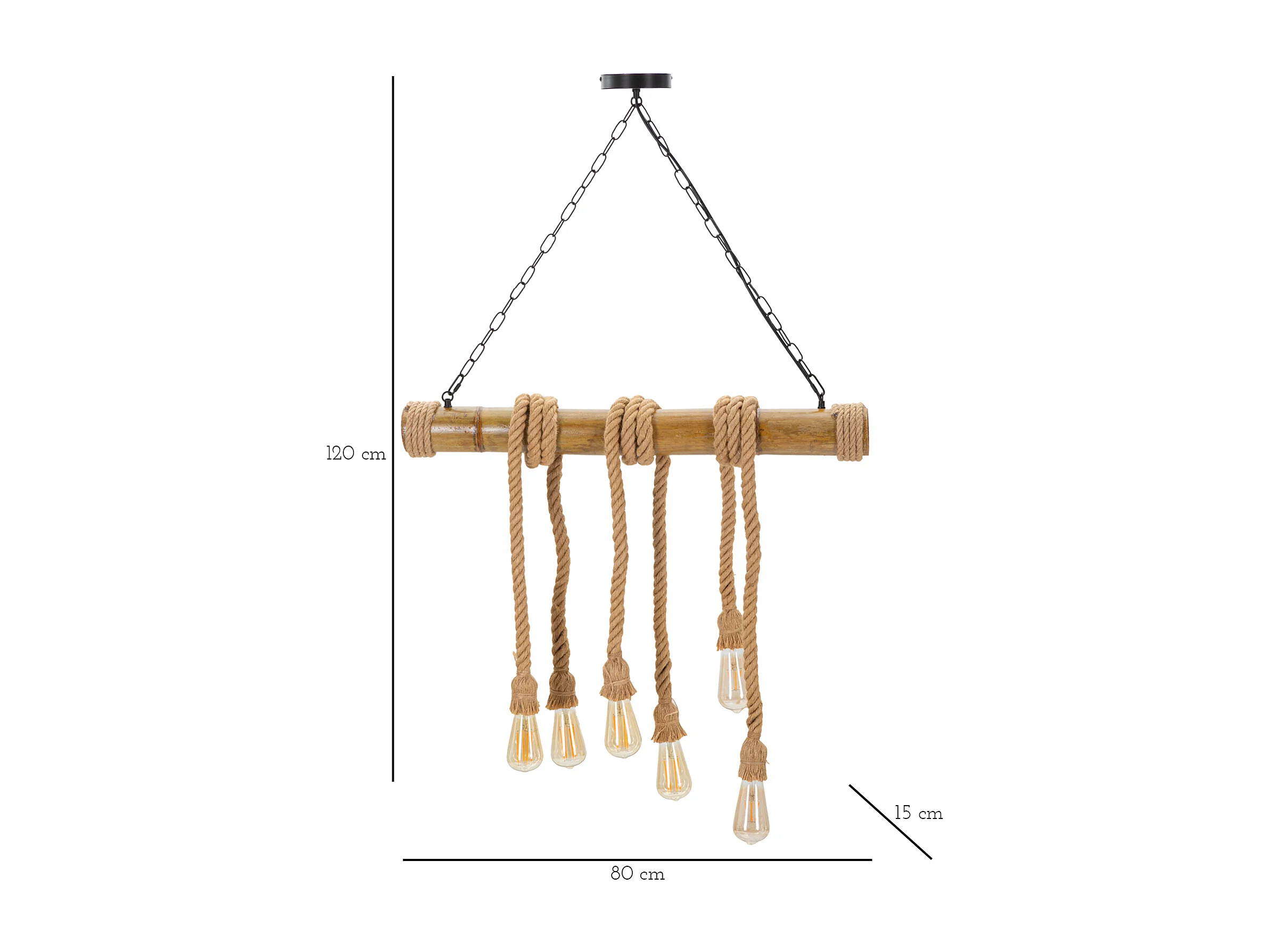 Lampe Suspension en Bambou "Rope" 80cm Naturel