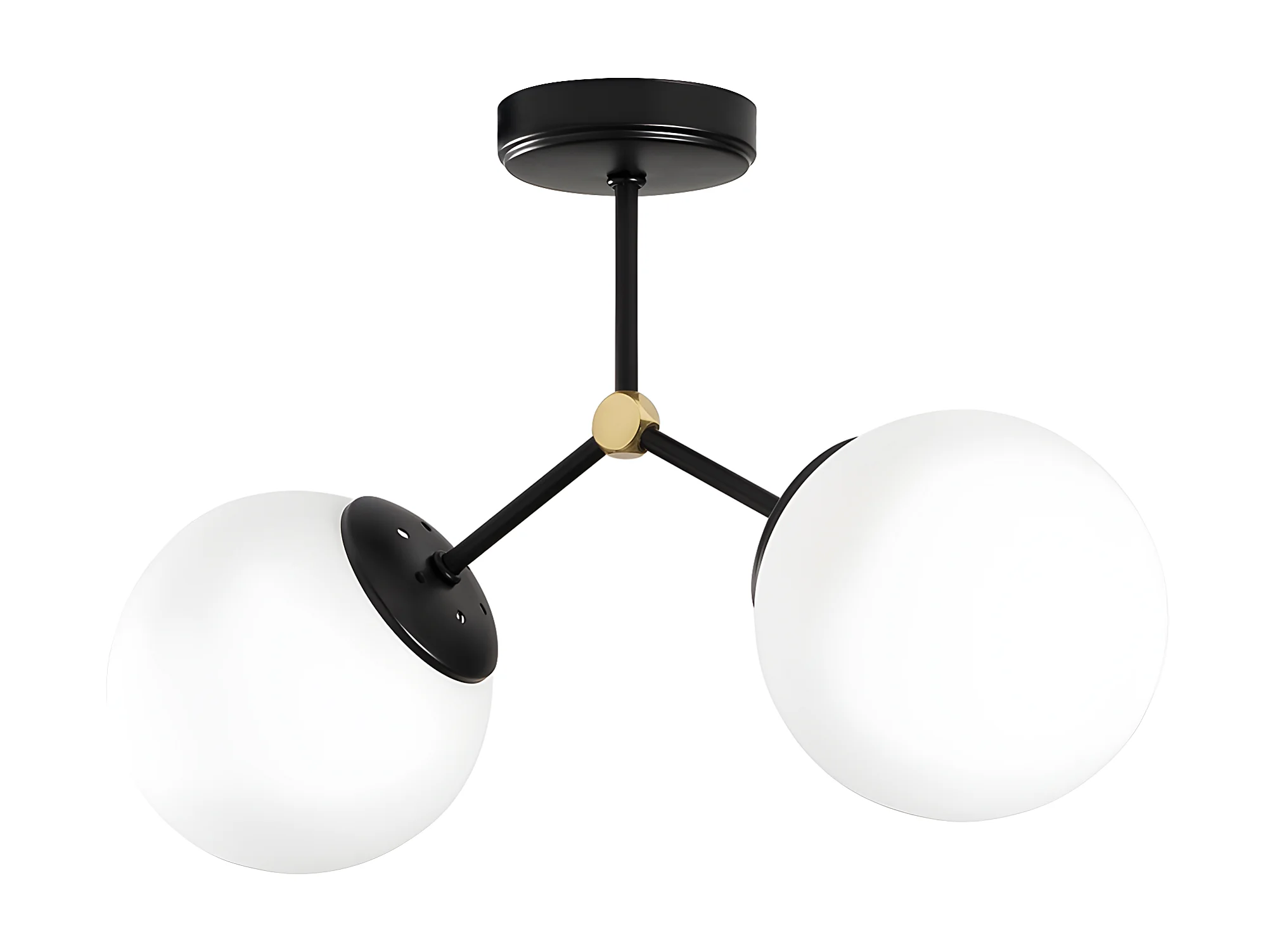 Plafonnier en métal 2 globes - L. 44 x H. 28 cm - Noir et blanc - DAMAR