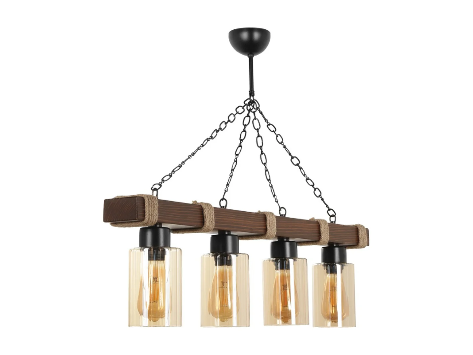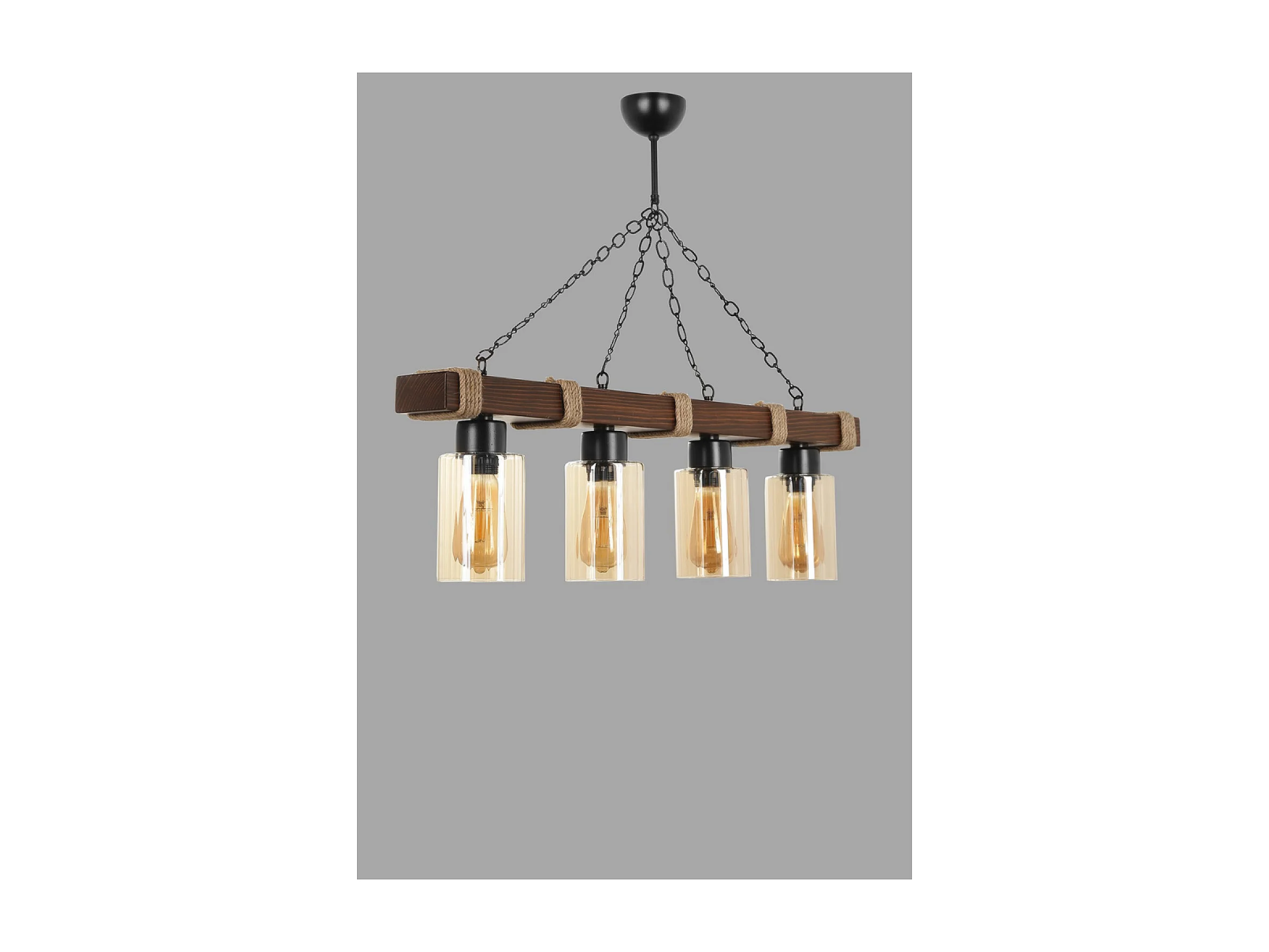 Suspension filaire 4 lampes bois et métal SAPHIA