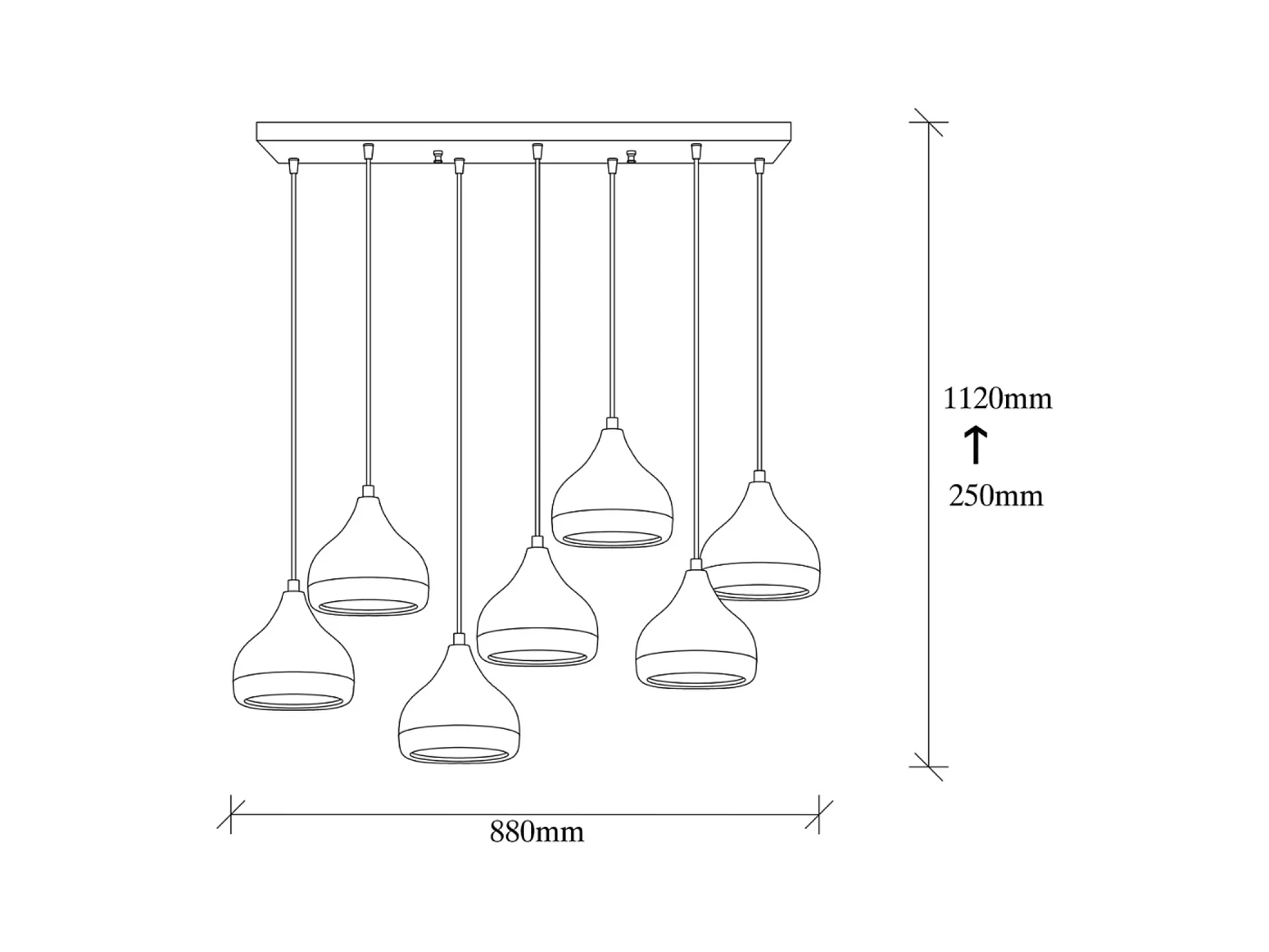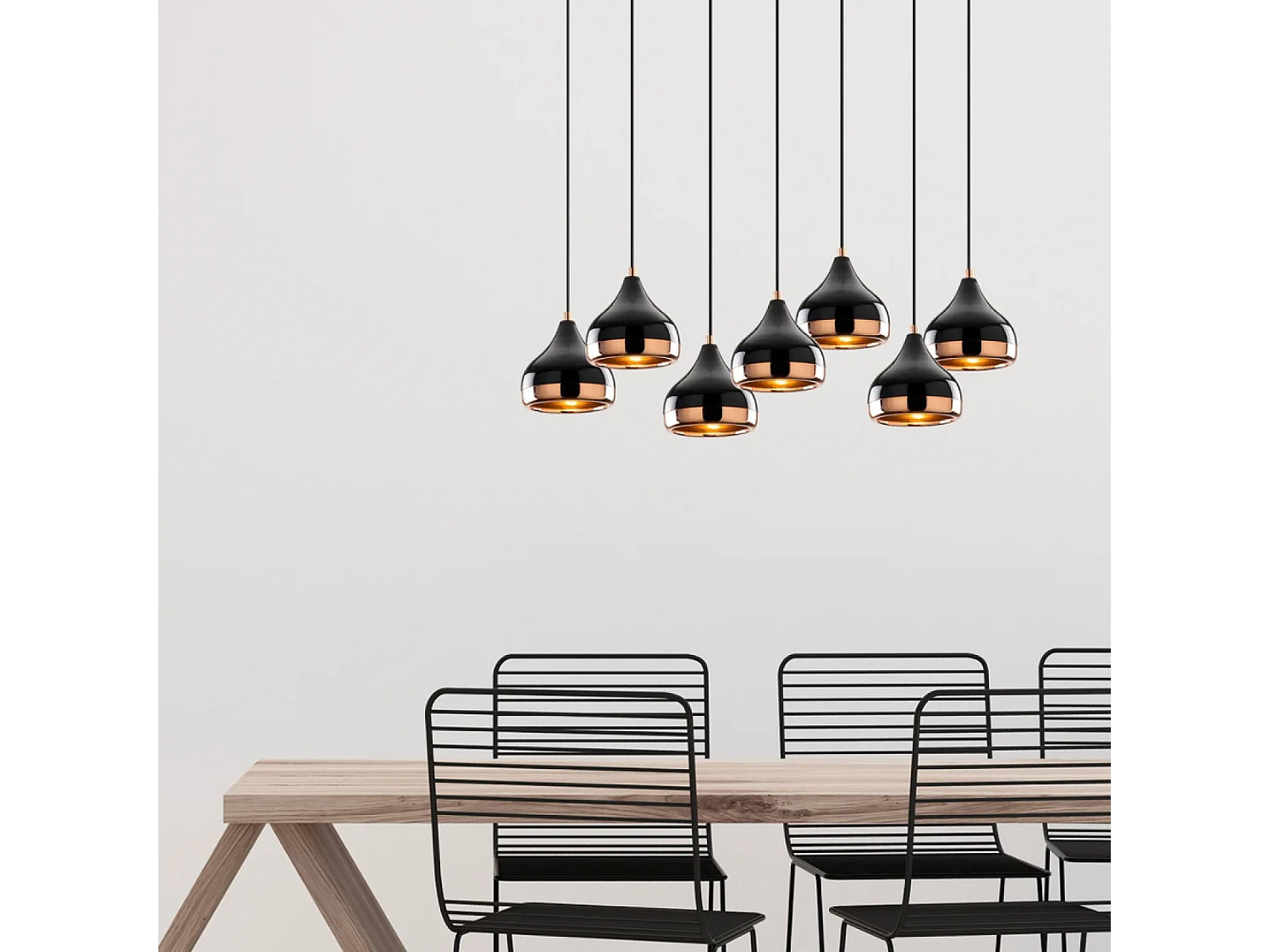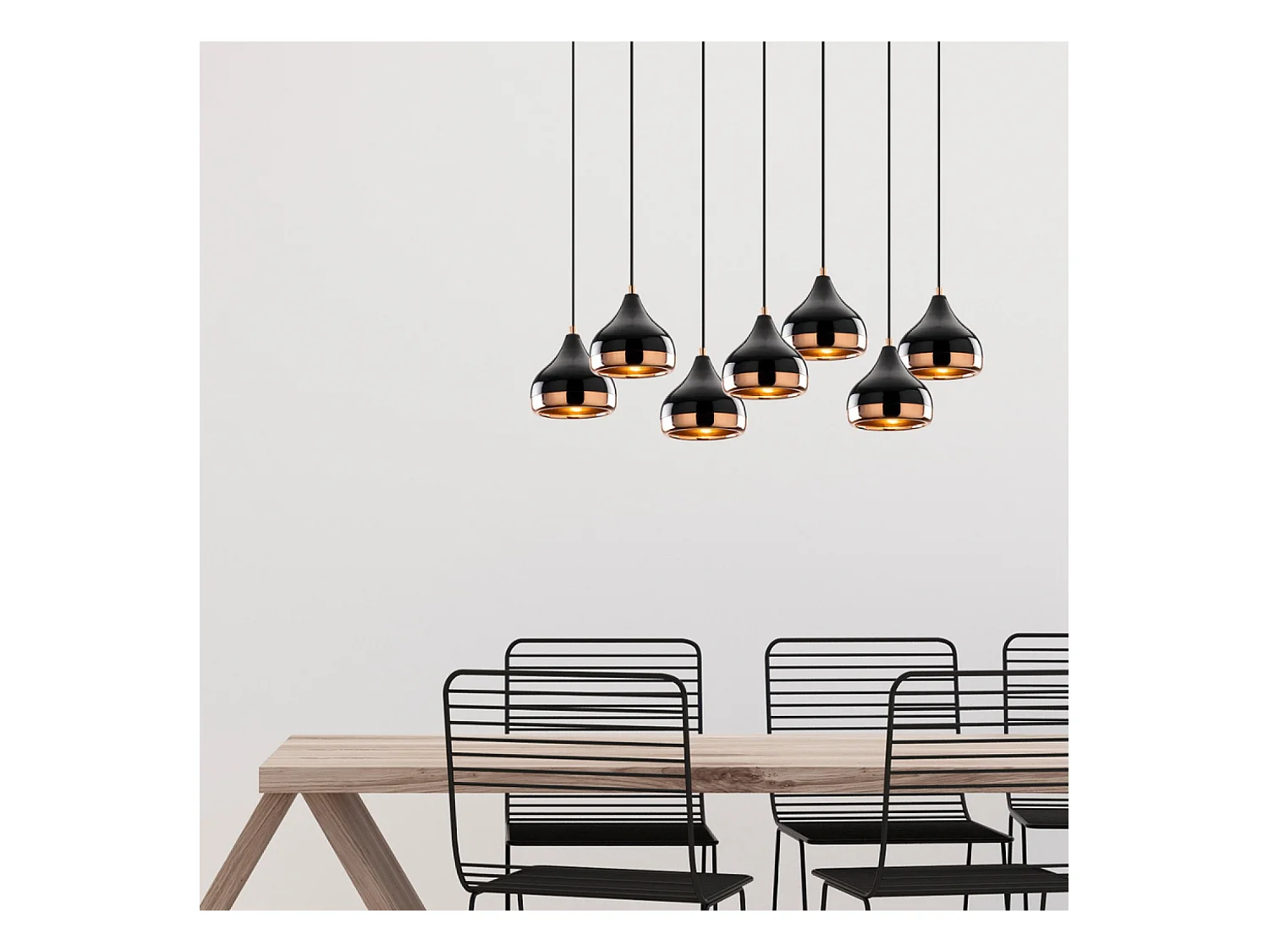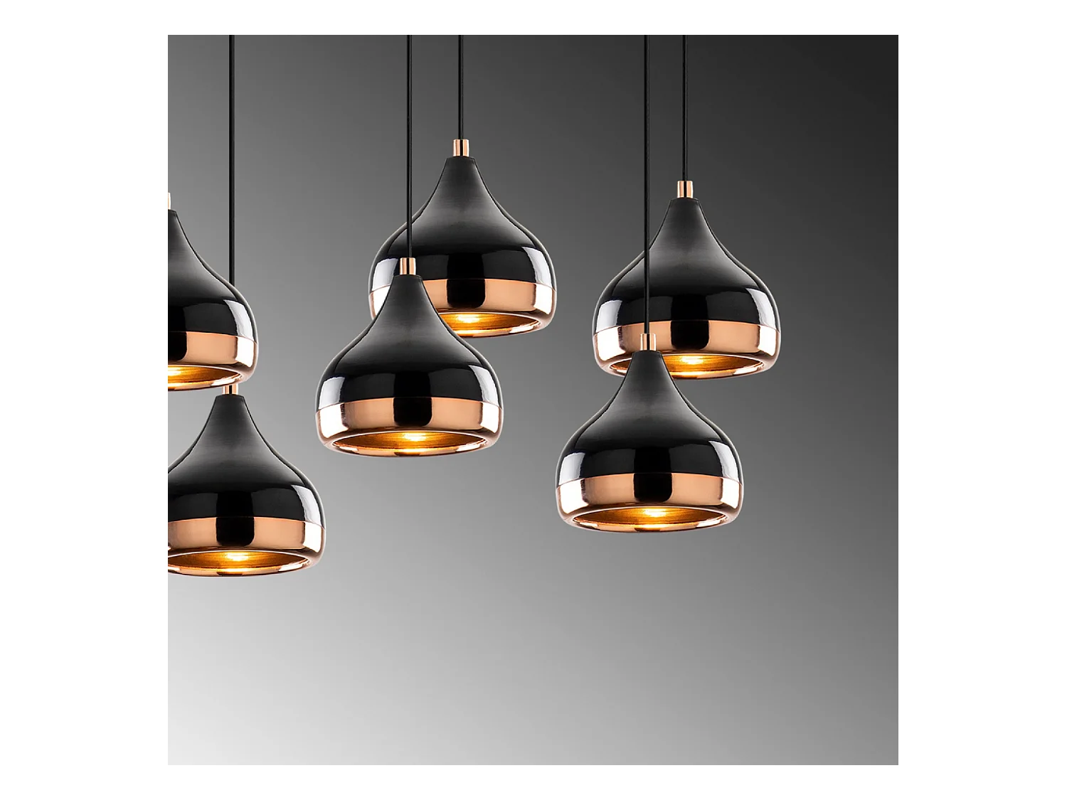 Suspension filaire noire et cuivrée 7 lampes MAYA