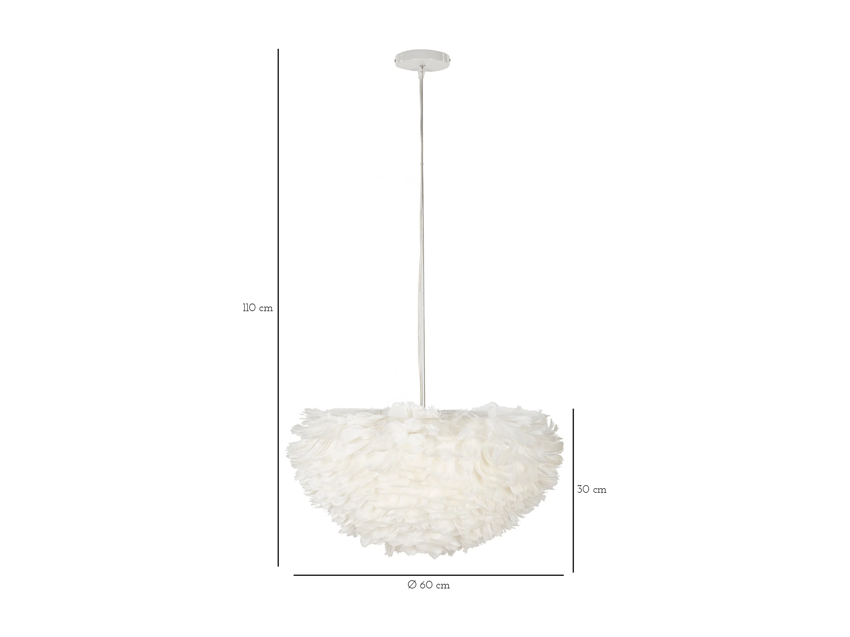 Lampe Suspension Déco "Imitation Plume" 60cm Blanc