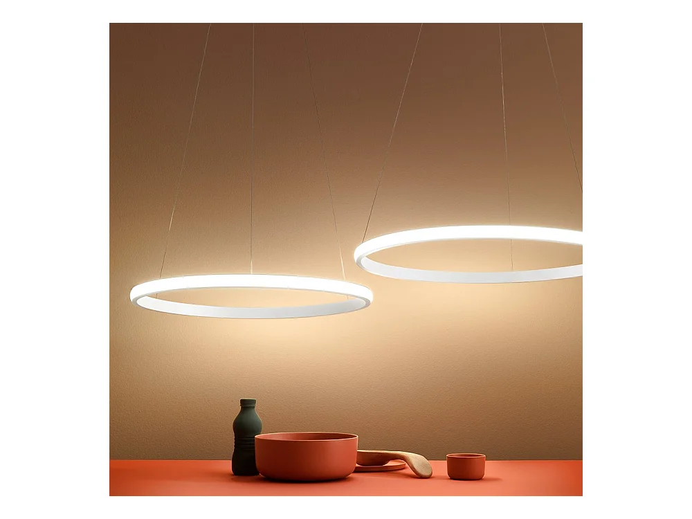 Lustre LED dimmable Iole S2 40W - Suspension moderne à double anneau blanc, lumière chaude 3000K, 2000lm, design élégant