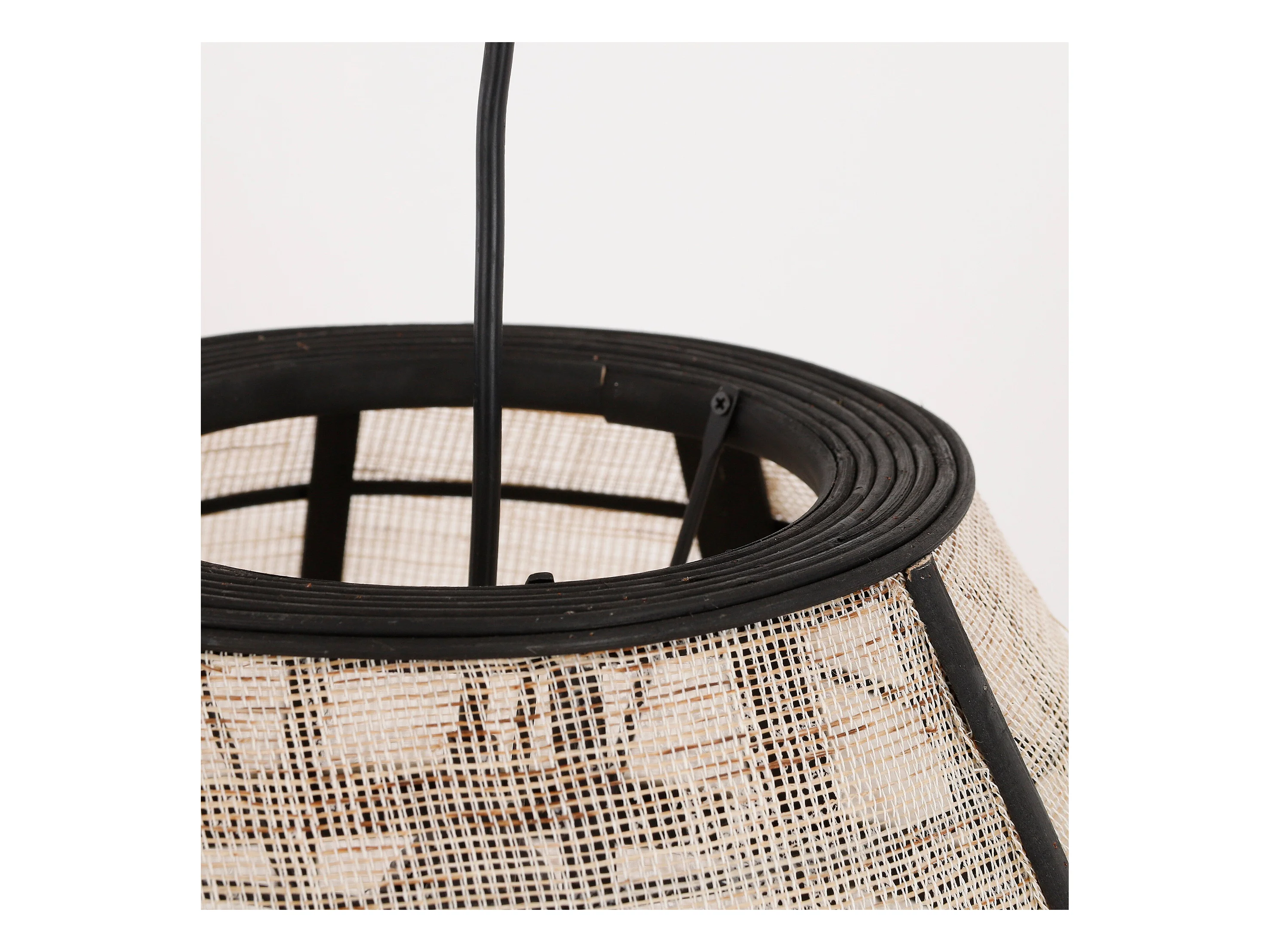 Suspension lumineuse en lin et bambou et bois tendre et contreplaqué et métal - Ø29 x 45,5 - Blanc cassé - PELLA