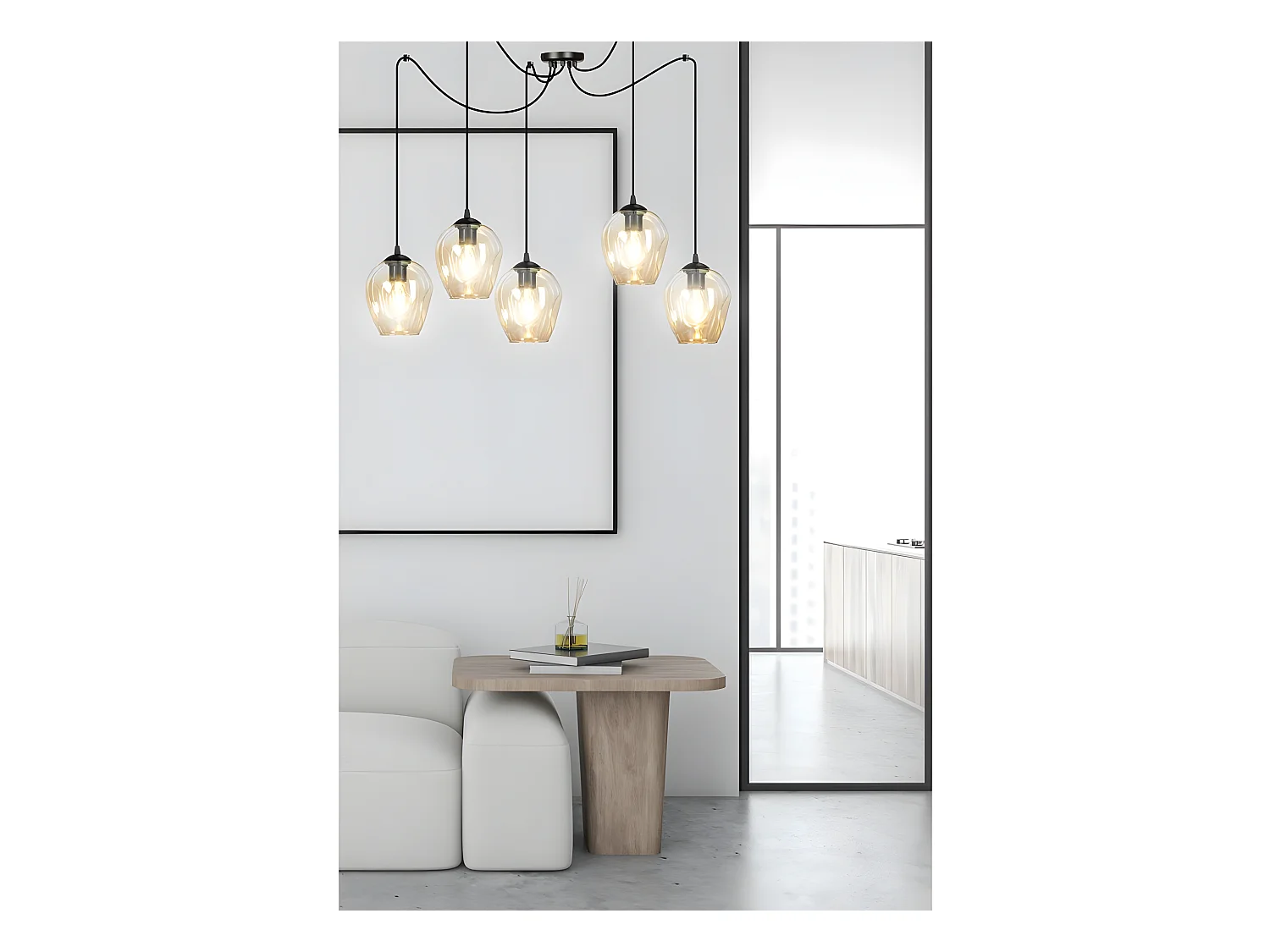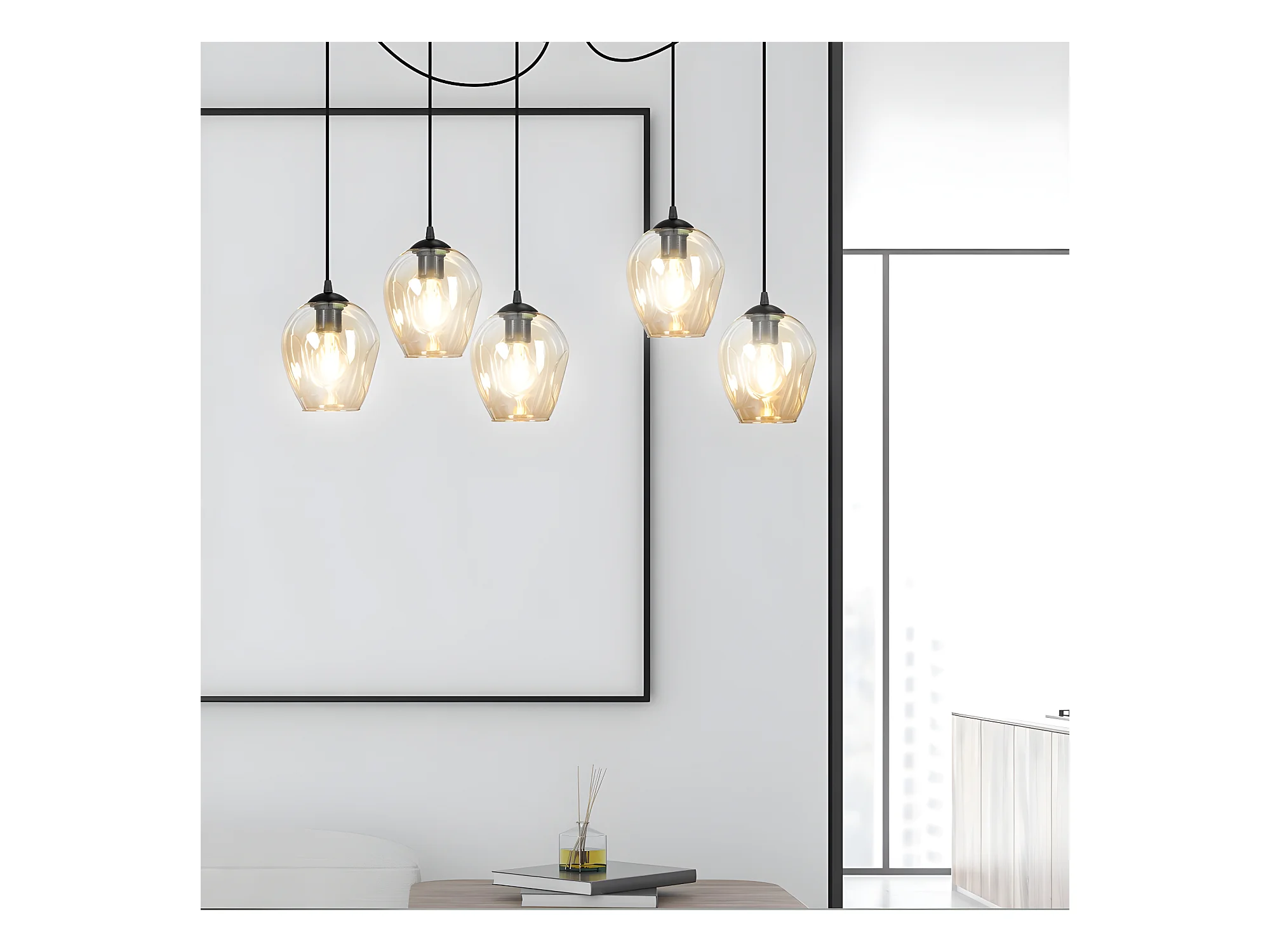 Suspension Maranto avec 5 câbles mobiles et 5 abat-jour ambre 5xE27