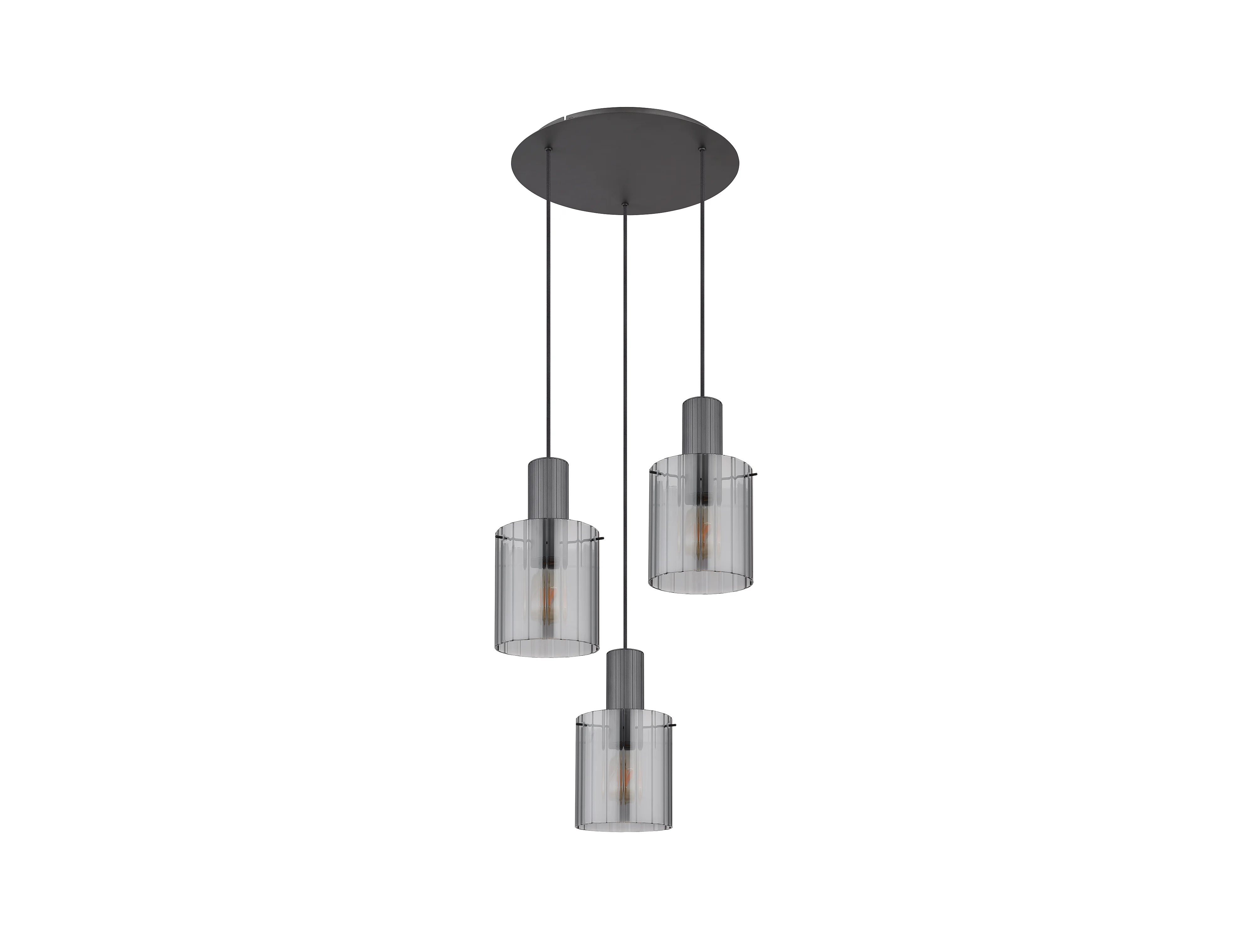 Suspension industrielle tubulaire - 3 lampes - Abat-jour semi-circulaire - Gris/Noir