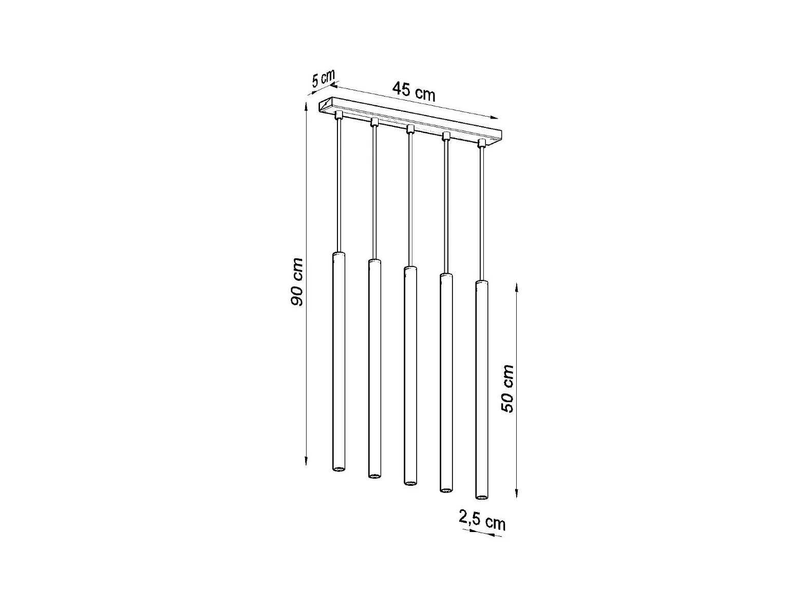 Sollux PASTELO Suspension à 5 ampoules Staight, blanc, G9