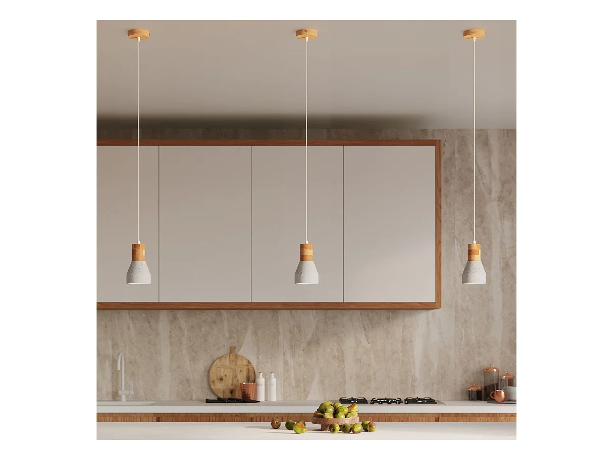 Sollux Lighting Qubic Dome Suspension Plafonnier Gris Béton, Bois Naturel