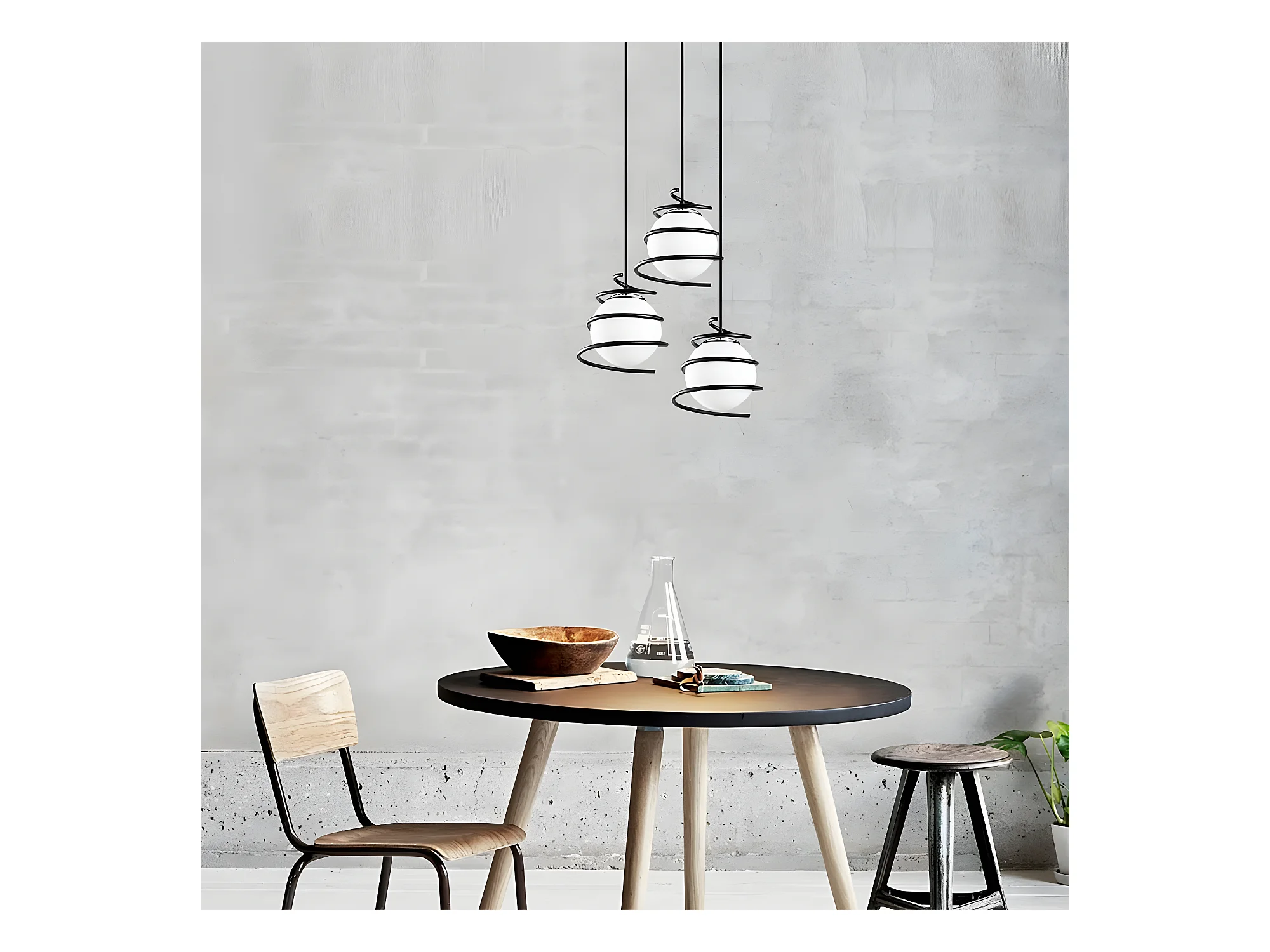Suspension moderne Galene avec 3 spirales noires et sphères en verre 3xE27 ø40cm
