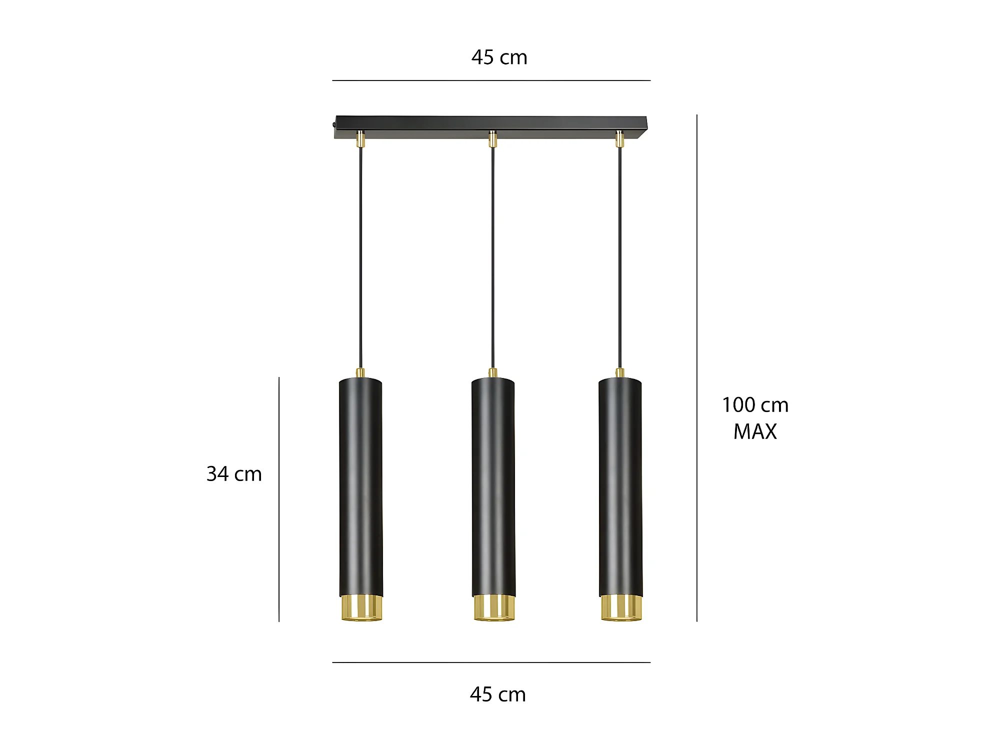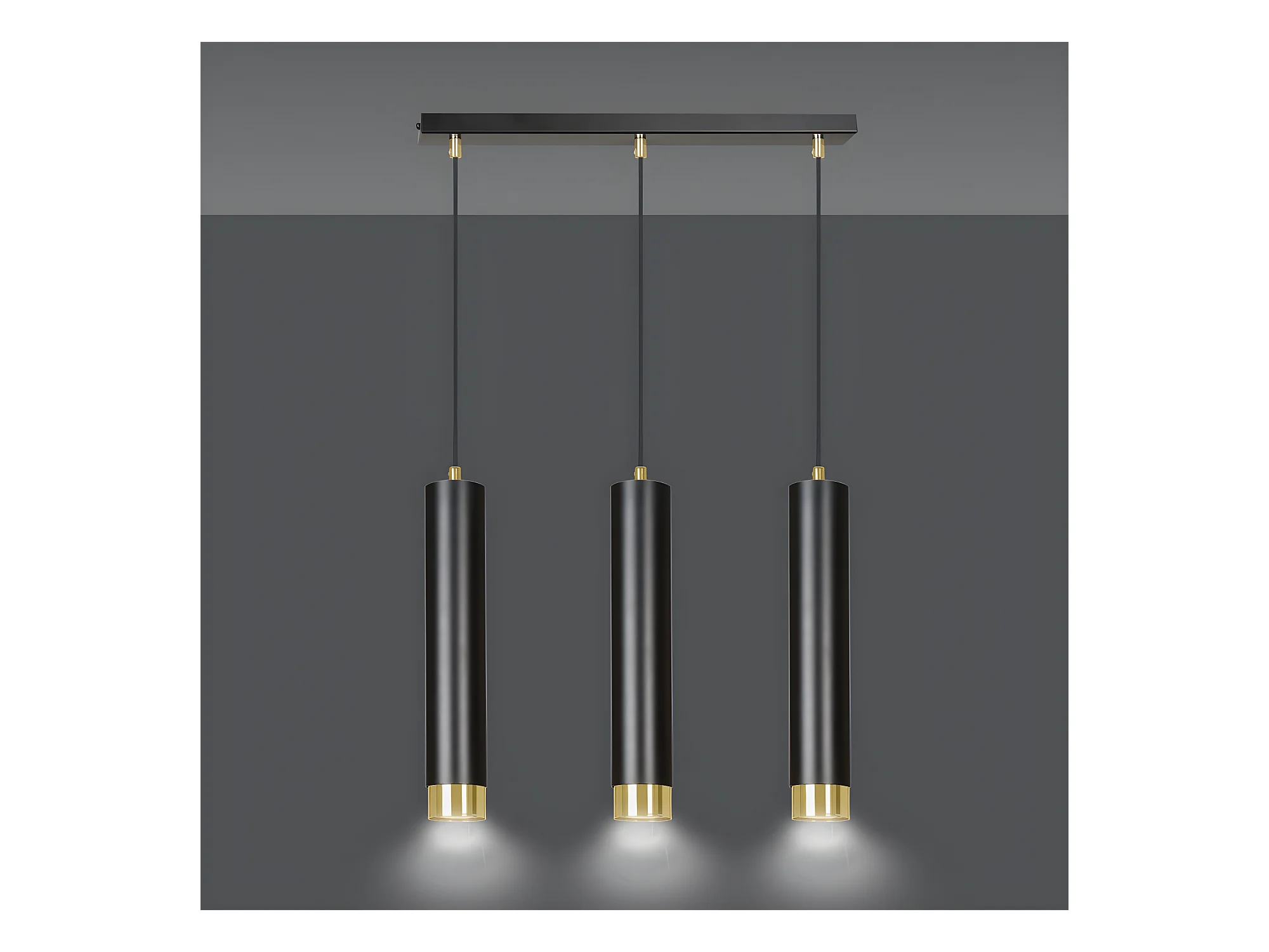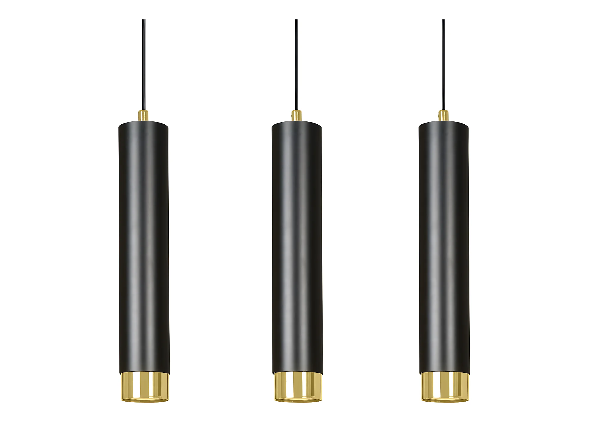 Suspension moderne Mura avec 3 abat-jour cylindriques noir et doré 3xGU10