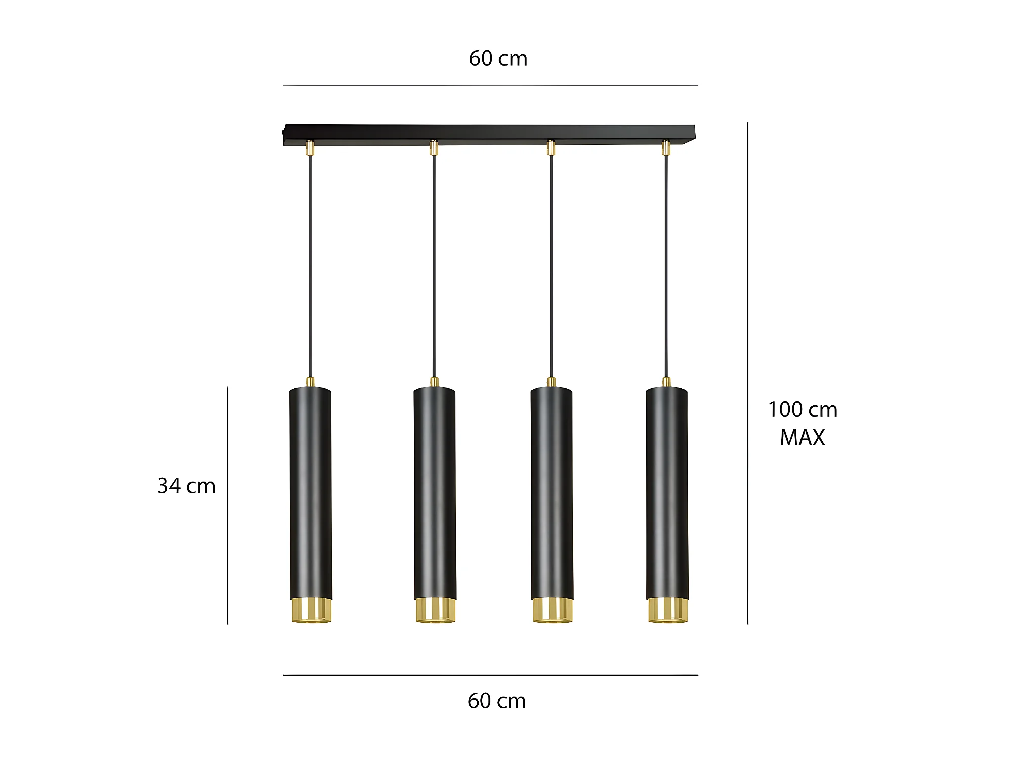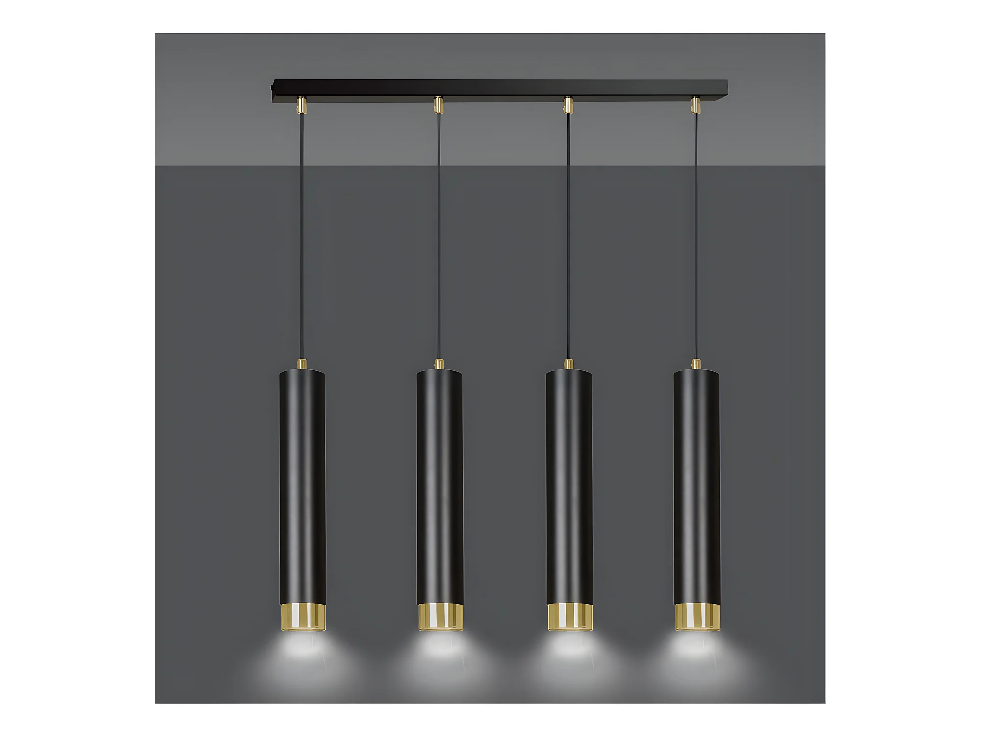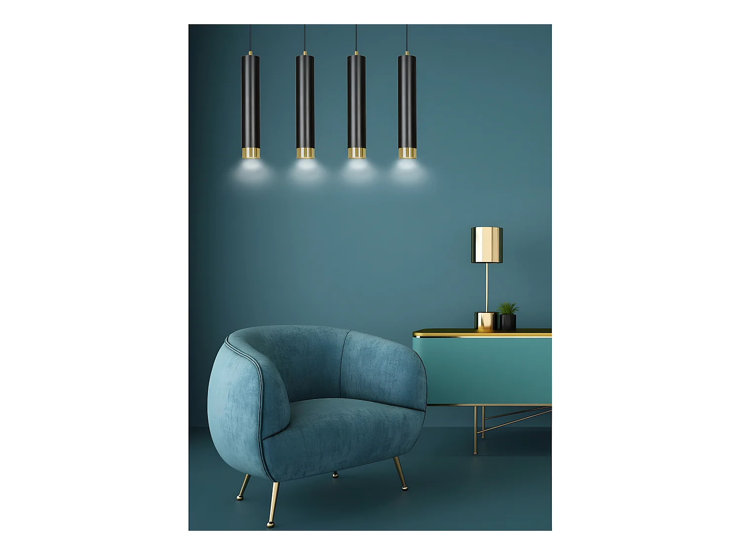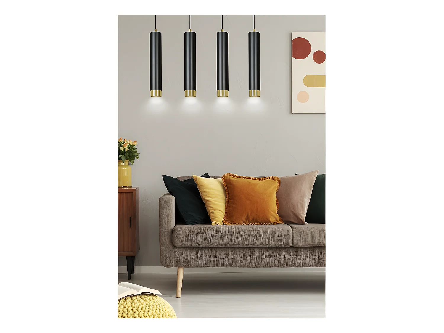 Suspension moderne Mura avec 4 abat-jour cylindriques noir et doré 4xGU10