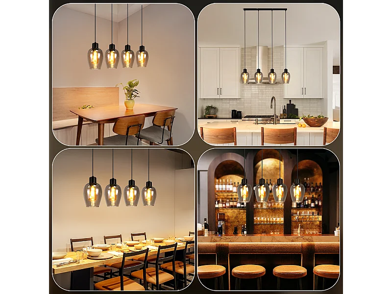 NETTLIFE Suspension pour table à manger, lampe suspendue en verre, 4 flammes, lampe de salle à manger vintage, E27, rétro