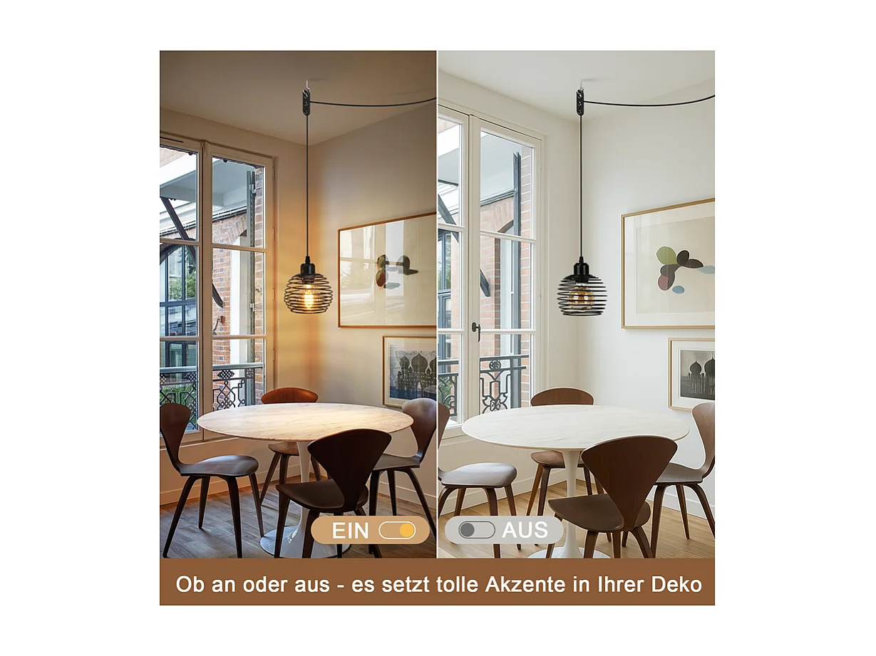 Suspension Nettlife Vintage 1 Ampoule : Suspension Industrielle Noire avec Câble de 4,5 m avec Prise et Interrupteur, Douille E27