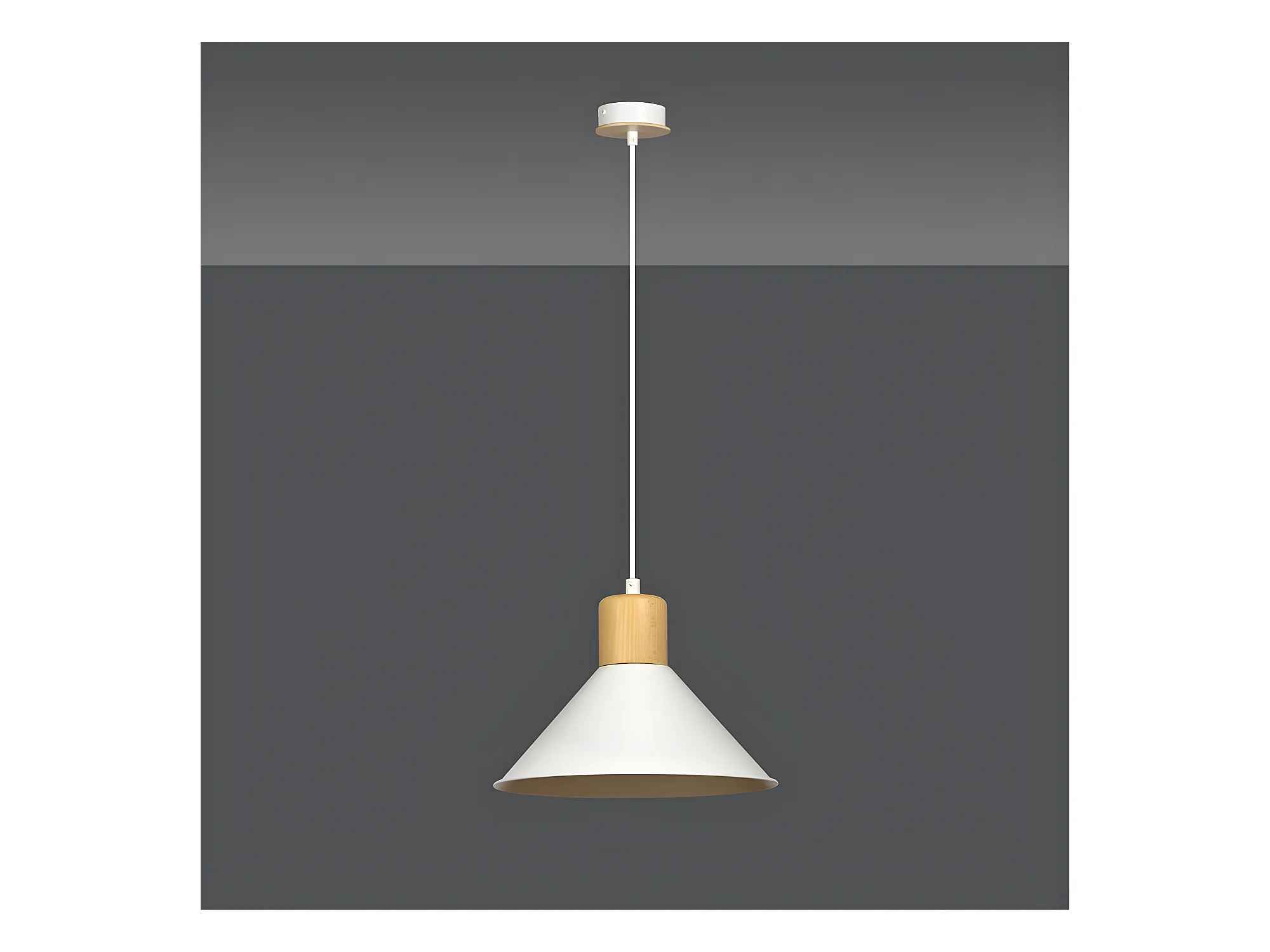 Suspension Nordic Lasso avec abat-jour blanc et détail en bois 1xE27 ø14cm