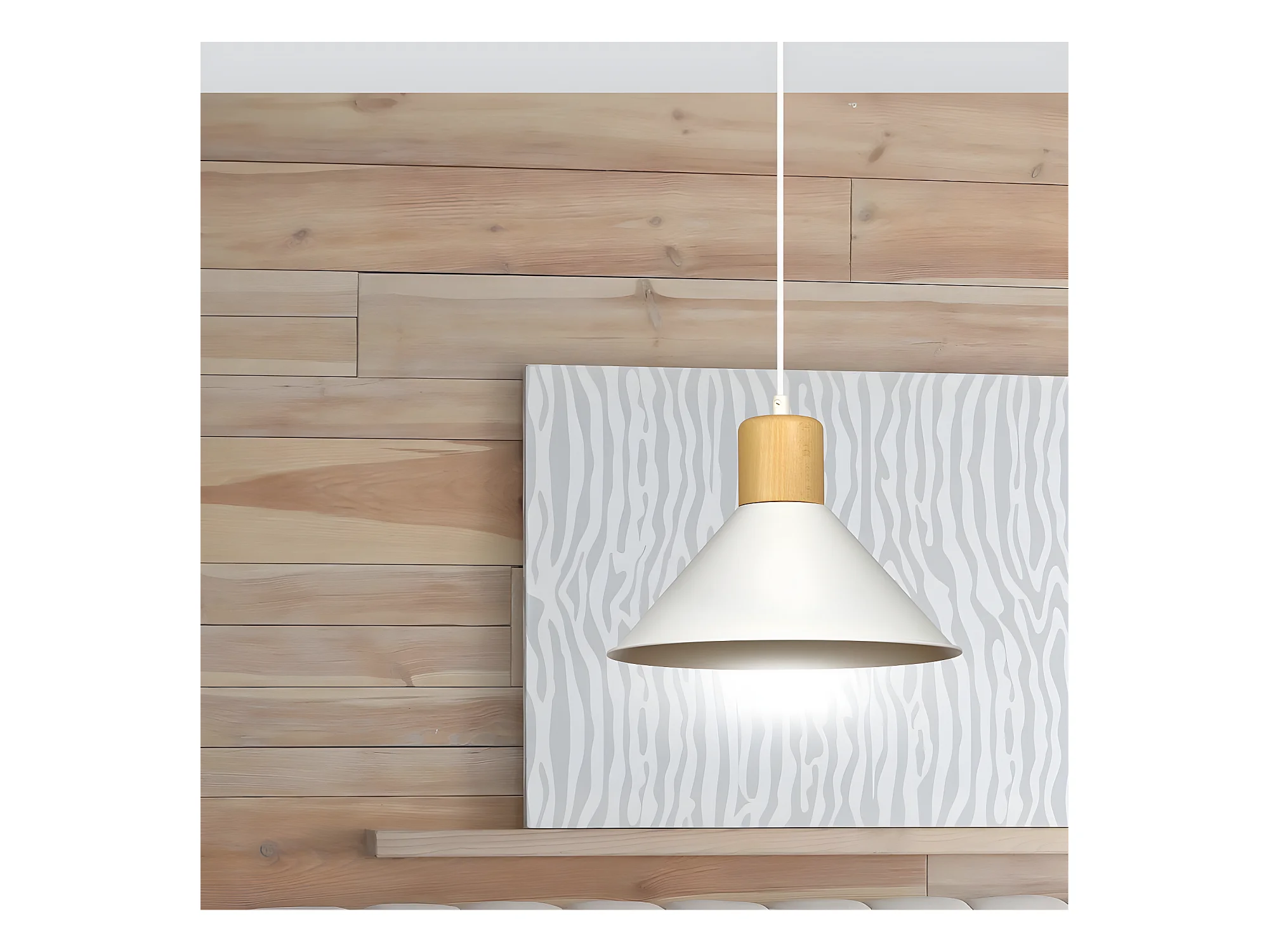 Applique suspendue Lasso avec abat-jour blanc et détail en bois 1xE27