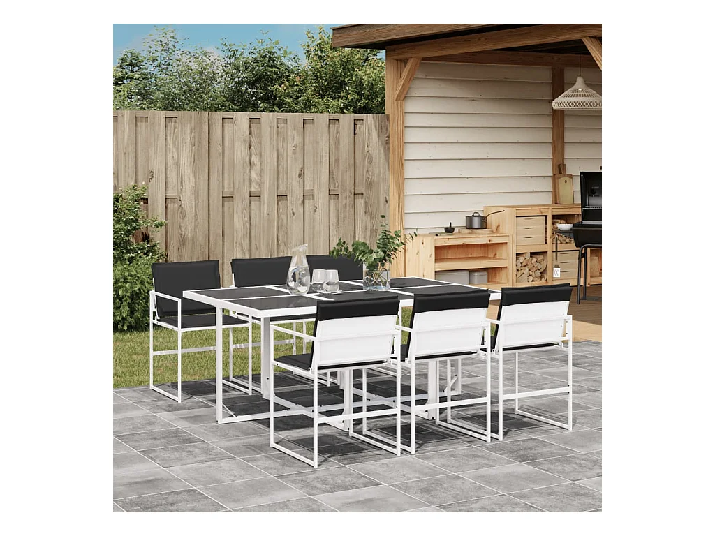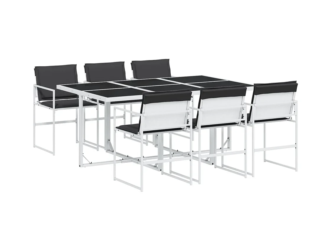 Salle à manger de jardin 6 places GROSSETO Verre de sécurité Noir/blanc