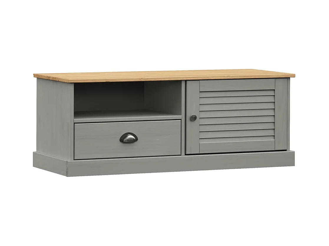 Sylna Meuble TV VIGO gris 106x40x40 cm bois massif de pin
