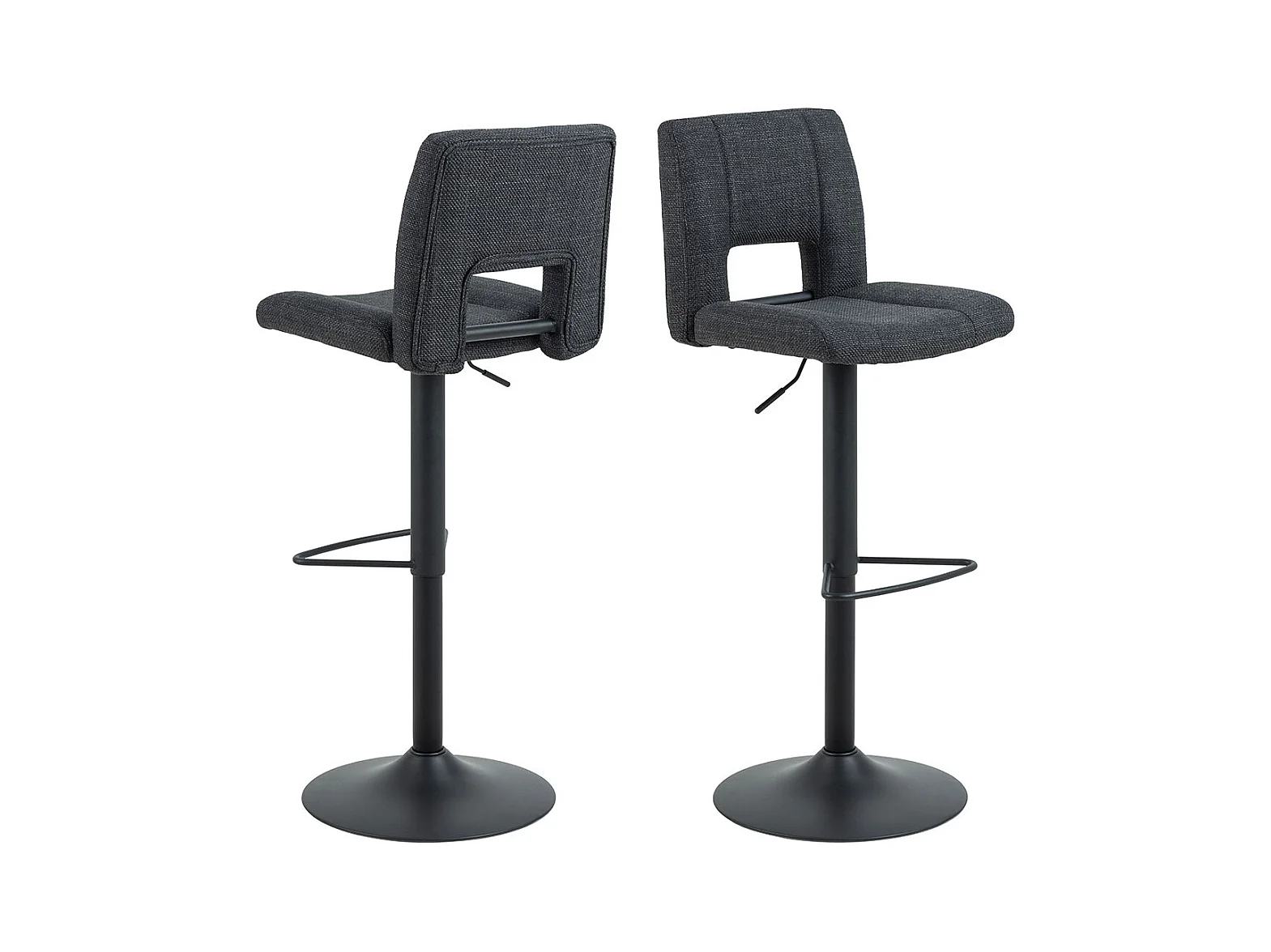 Tabouret de bar tissu gris et pieds métal noir Rava