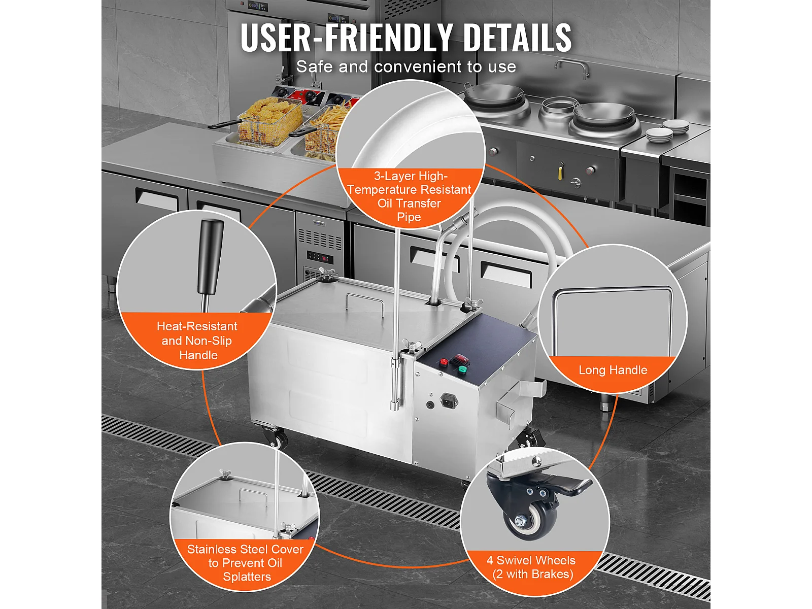 Système de Filtration d'Huile SucceBuy pour Friteuse Commerciale, Capacité de 55 L, Vitesse de Filtration de 10 L/min, avec Roues Pivotantes et Tuyau
