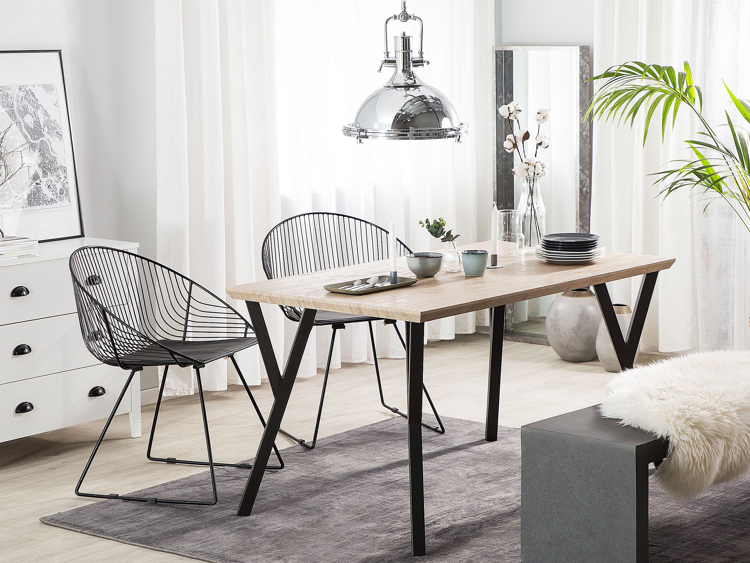 Table rectangulaire 160cm chêne clair et pieds métal anthracite Flavio 6 places