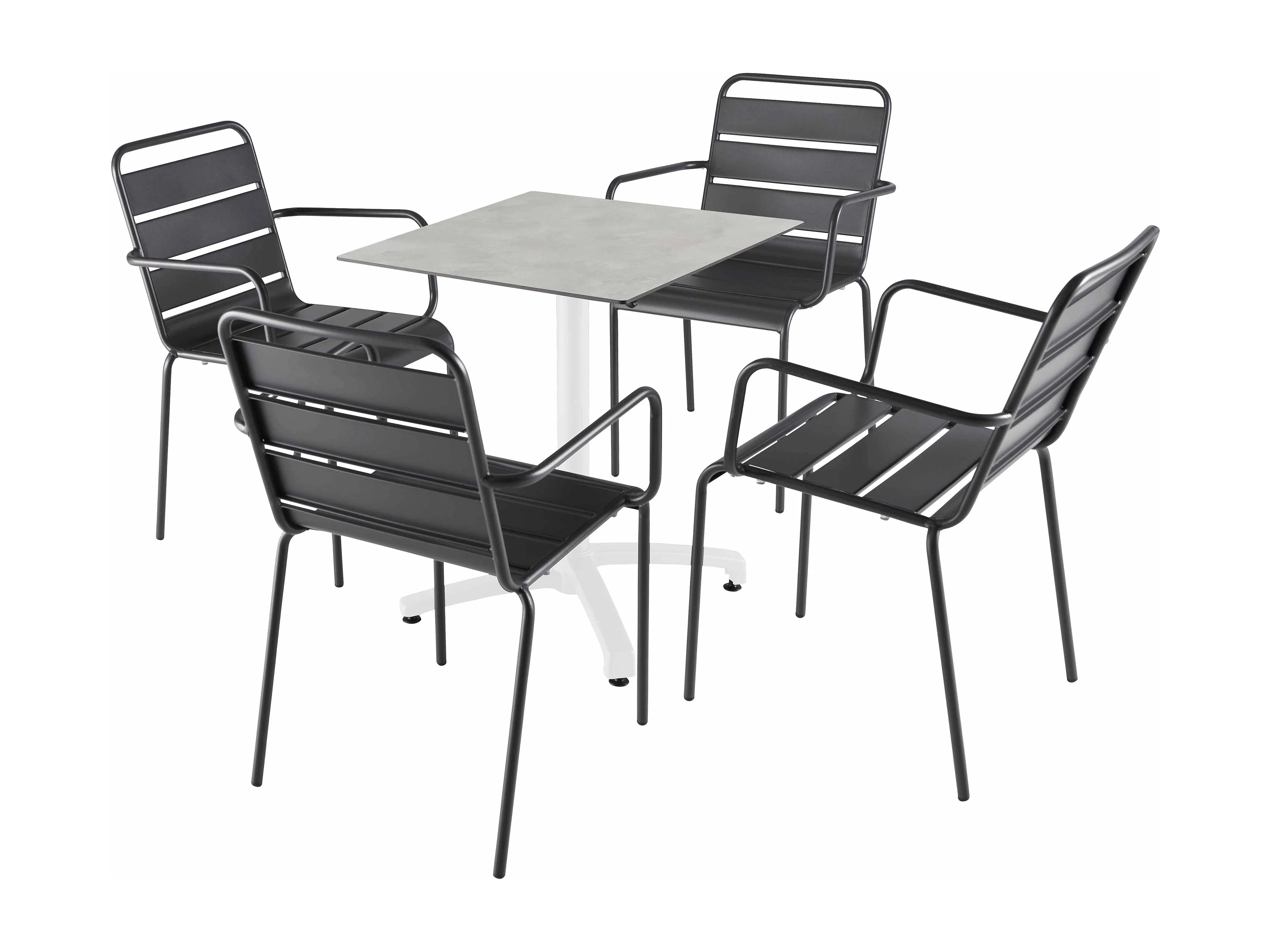 Ensemble table 60 cm ardoise et 4 chaises en métal gris