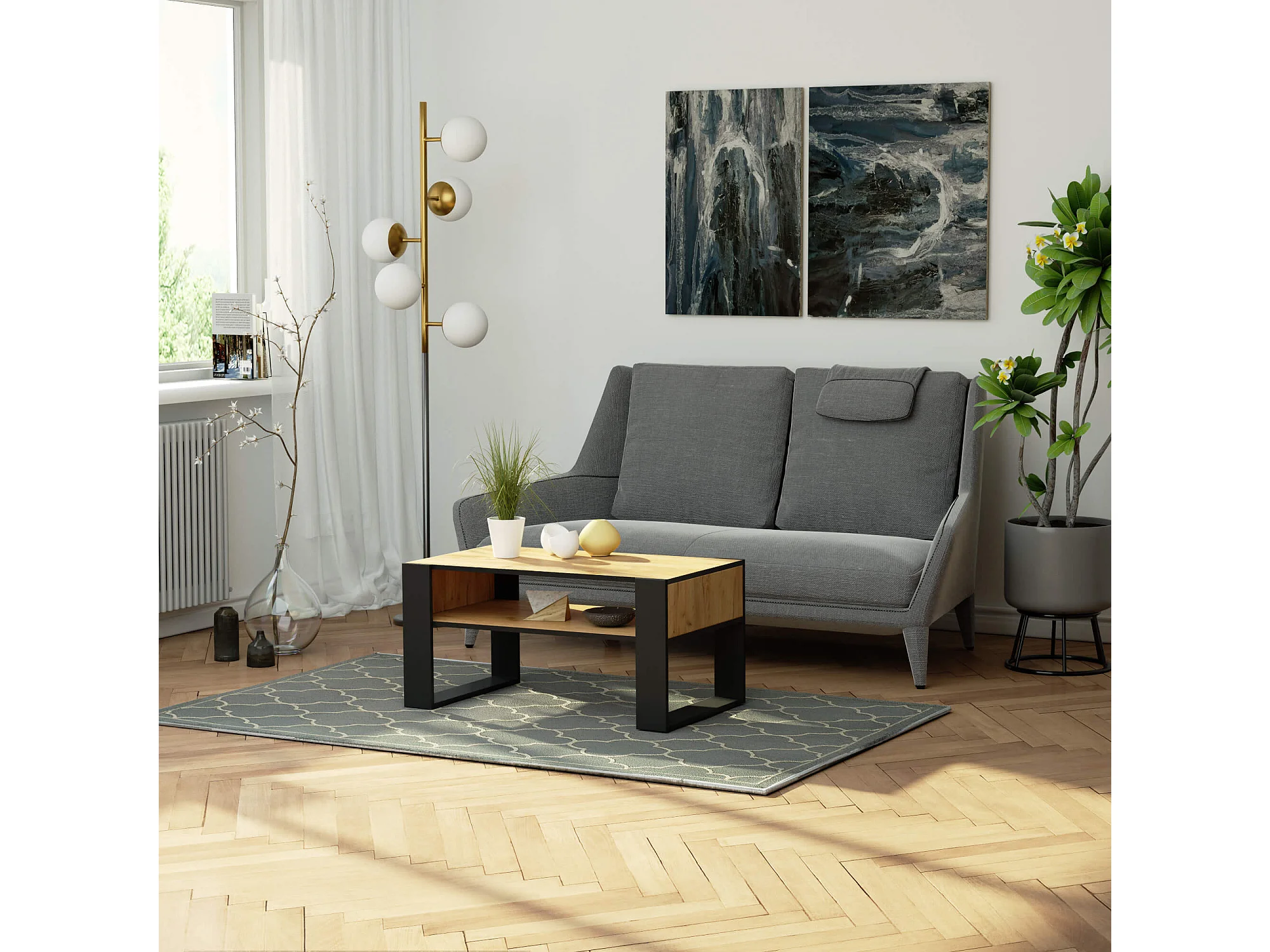 Table basse AKORD DOMI Chêne Craft 92 cm pieds Noir 92x50x45 cm