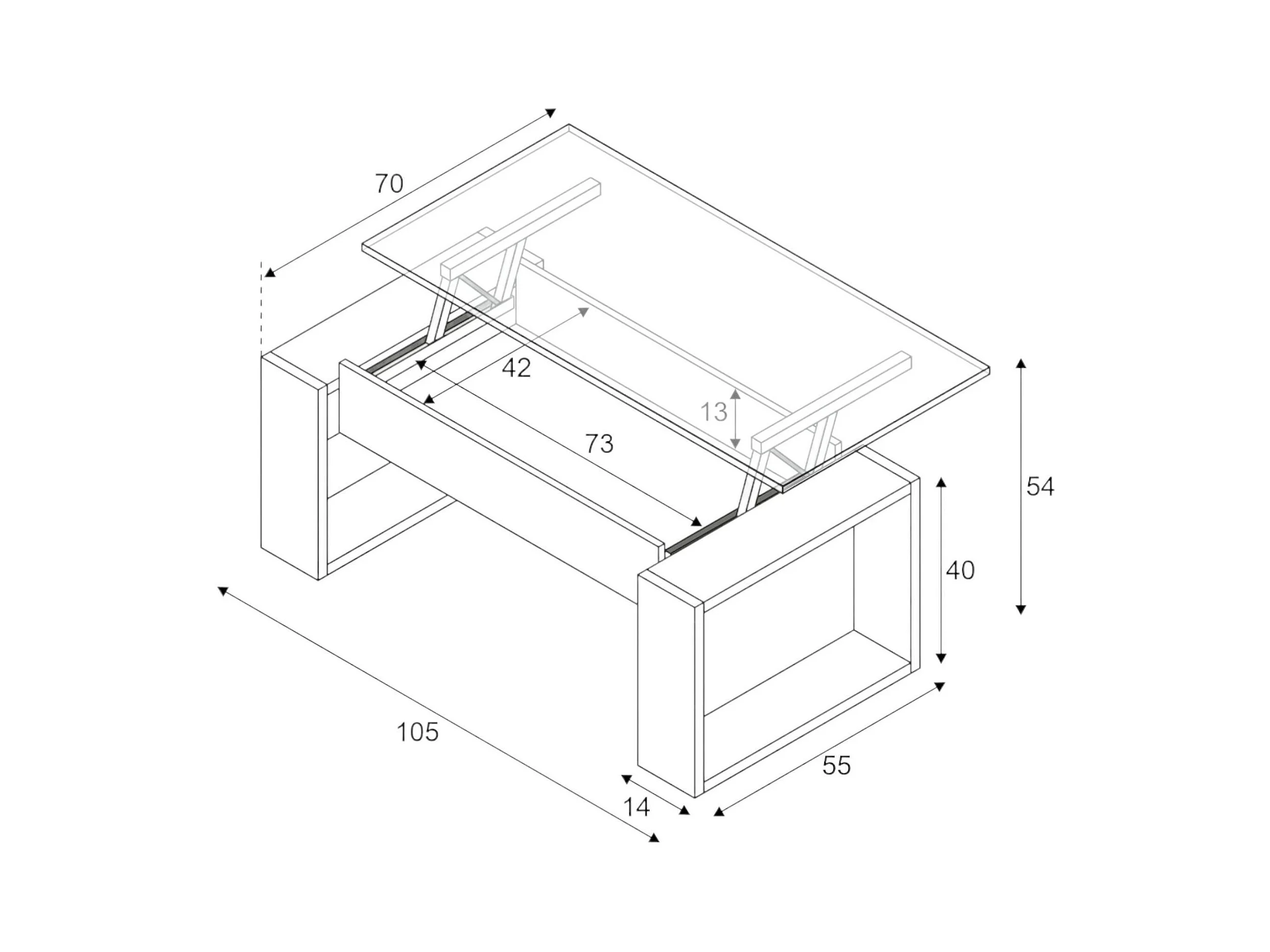 Table basse Ddav, Table basse avec plateau relevable, Table basse de salon, 105x55h45/56 cm, Chêne noué