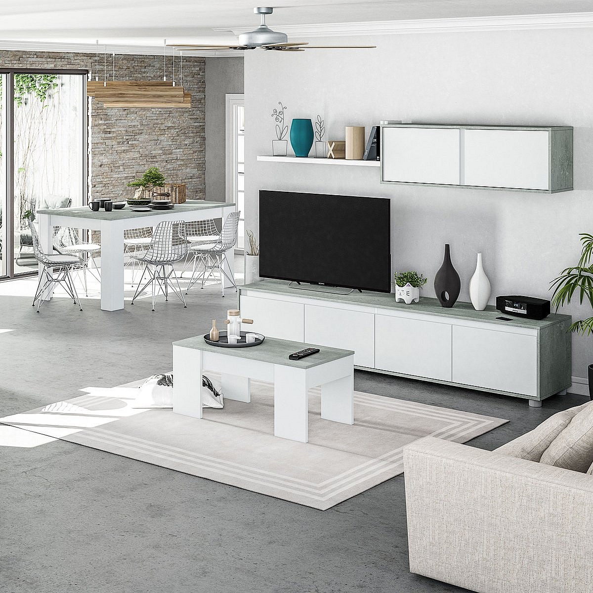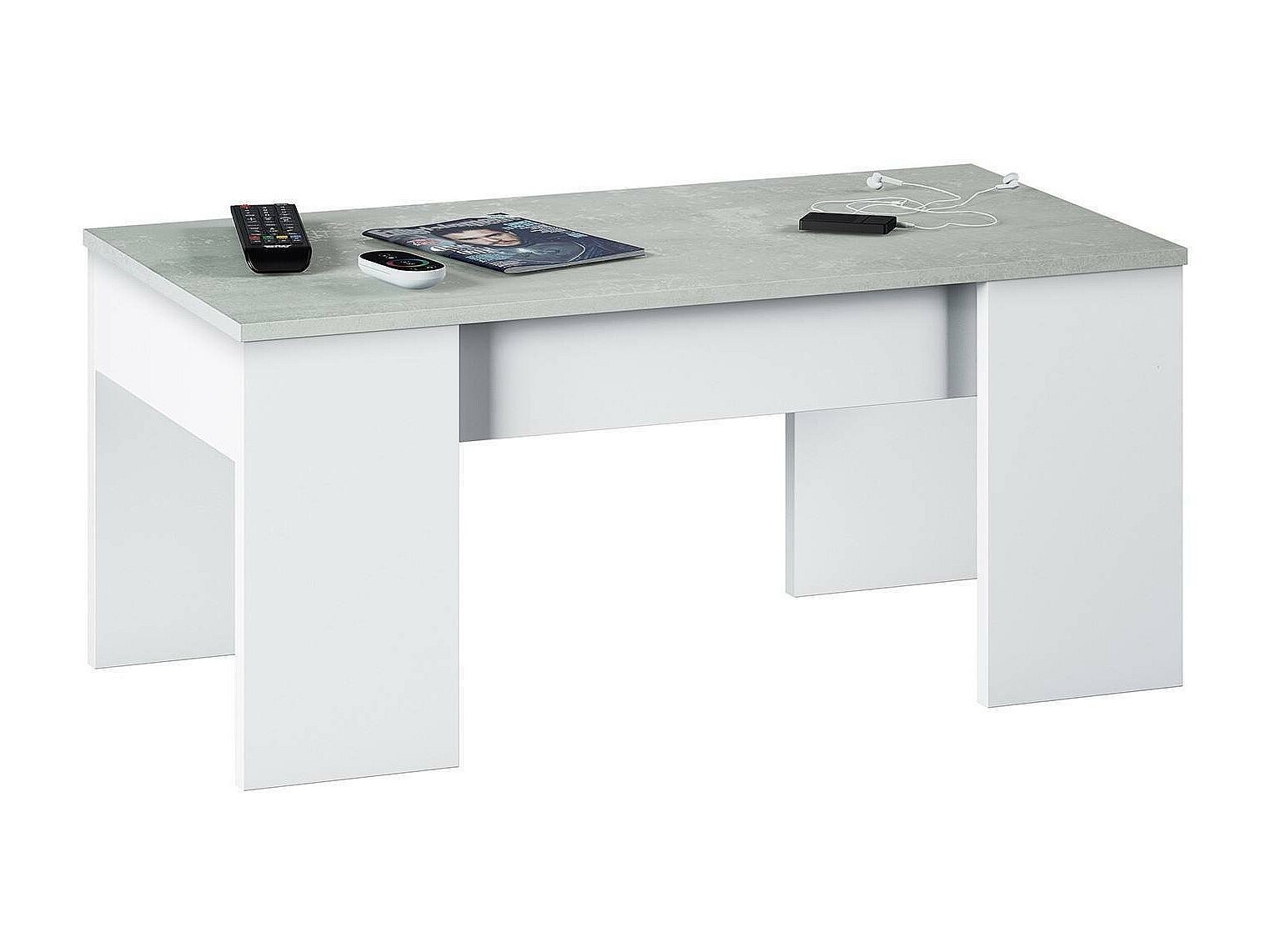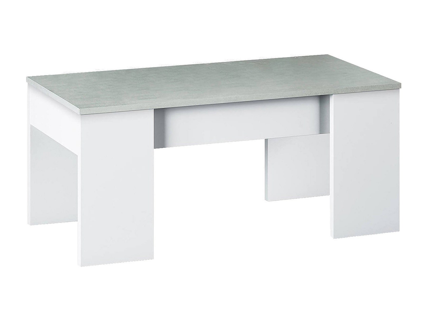 Table basse Dleal, Table basse avec plateau élévateur, Table basse de salon, 100x50h45/56 cm, Blanc et béton