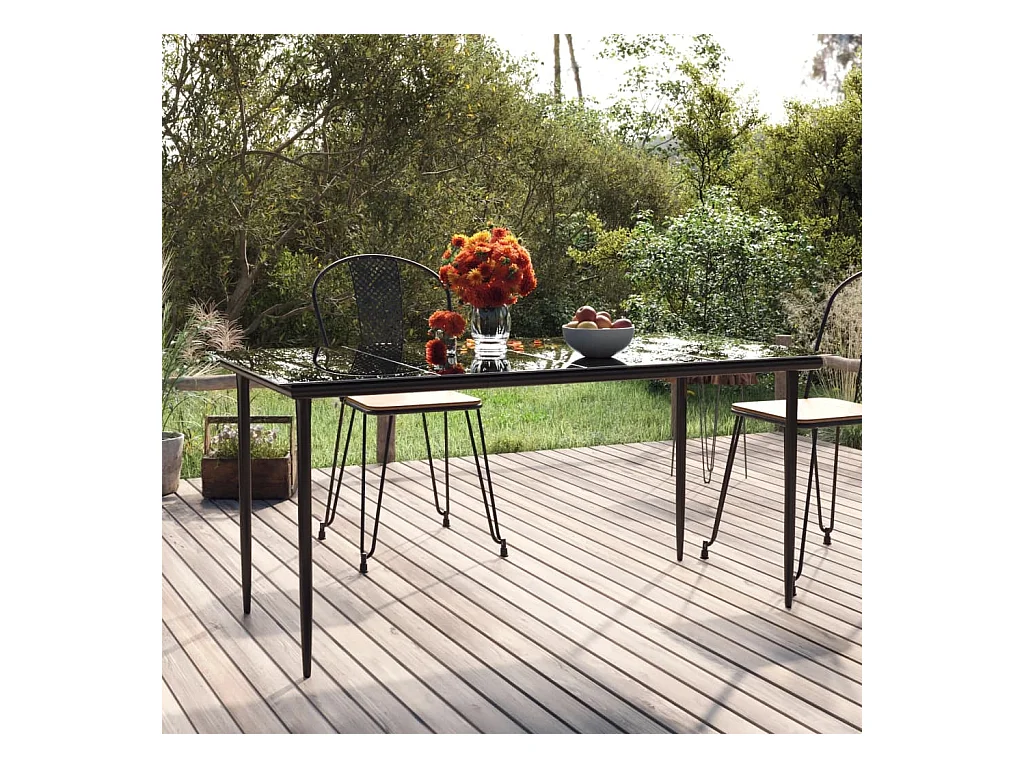 Table à dîner de jardin Noir 160x80x74 cm Acier et verre trempé