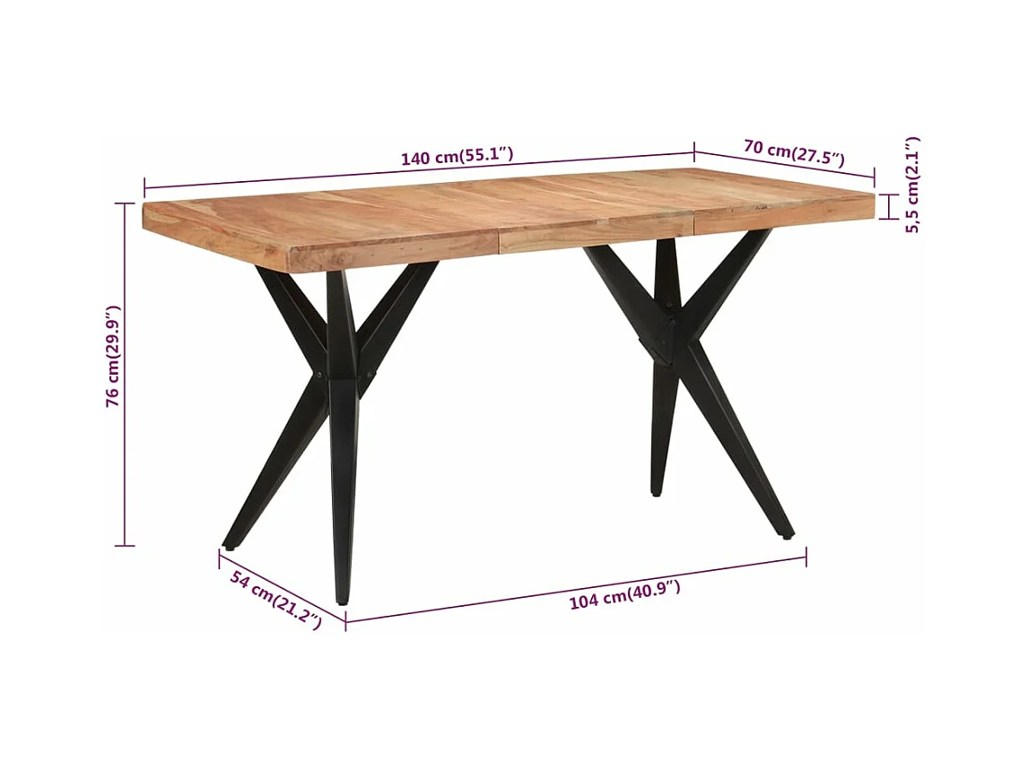 Table à dîner noir 140x70x76 cm bois d'acacia solide