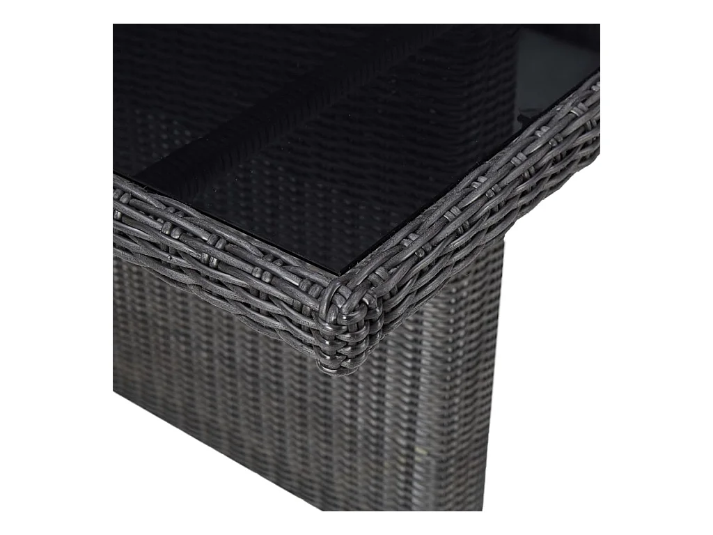Table de jardin dessus en verre noir 190x80x74cm résine tressée