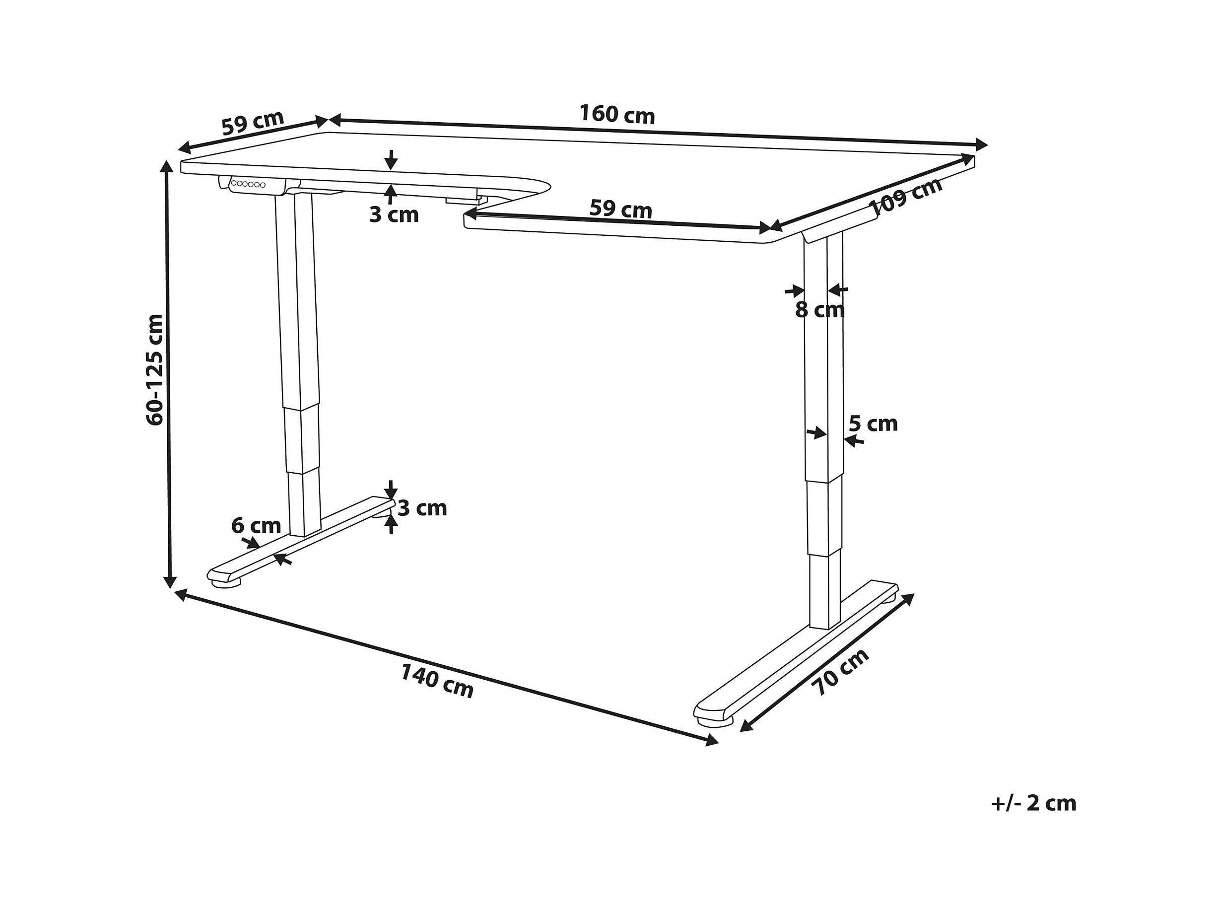 Bureau d'angle réglable électriquement DESTINES Marron/blanc 160 cm 109 cm Côté droit