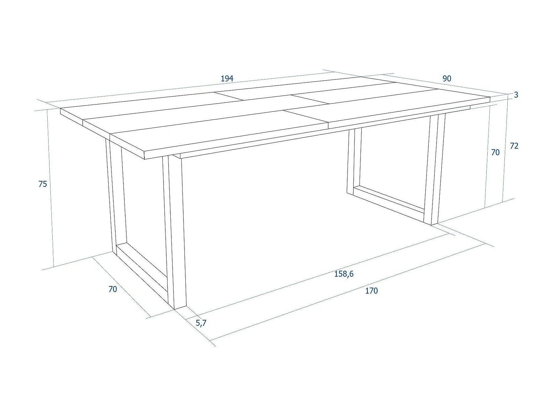 Table à manger, 10 personnes, 194x90x75cm, Robuste et stable, Chêne, Style industriel