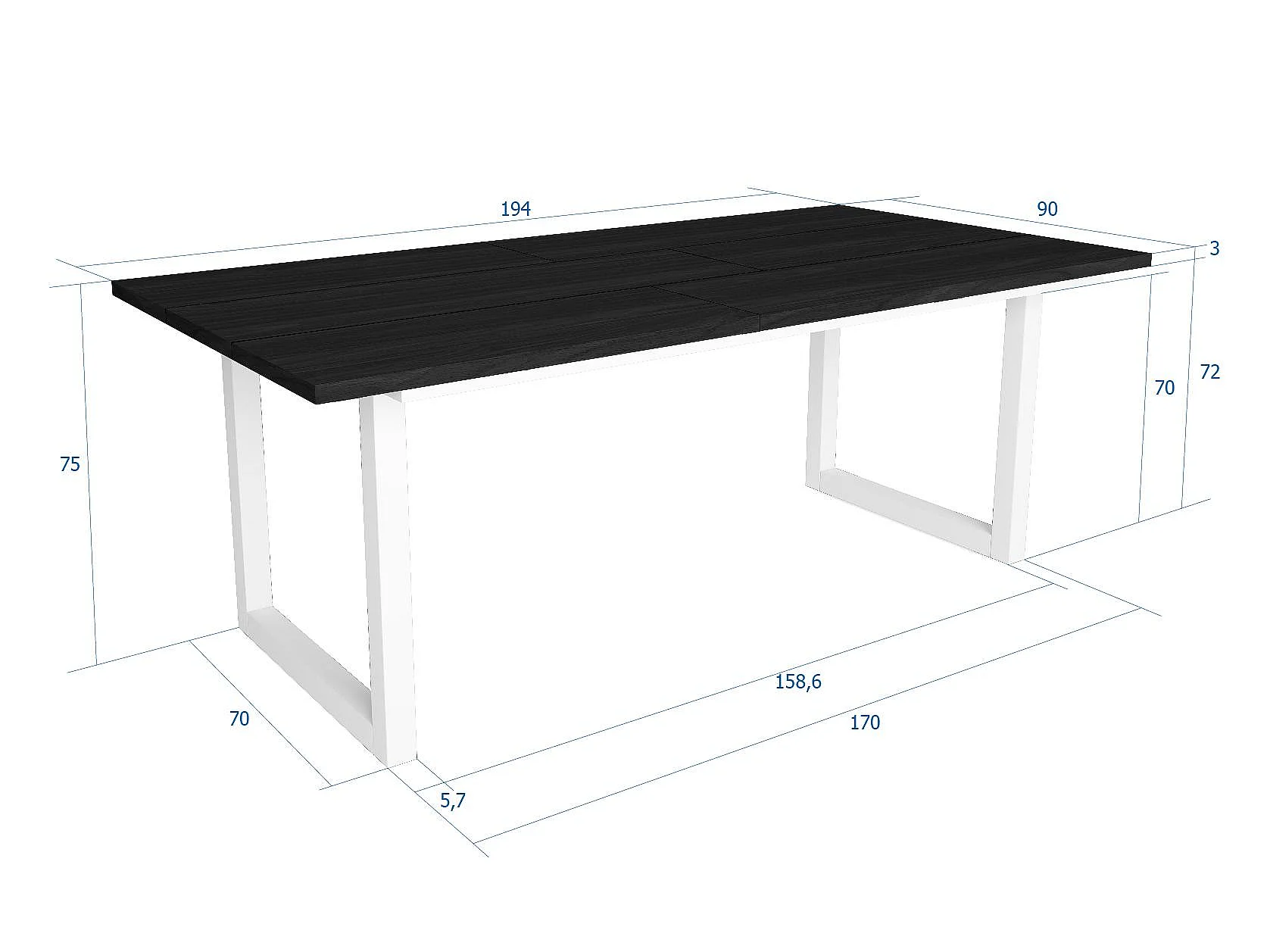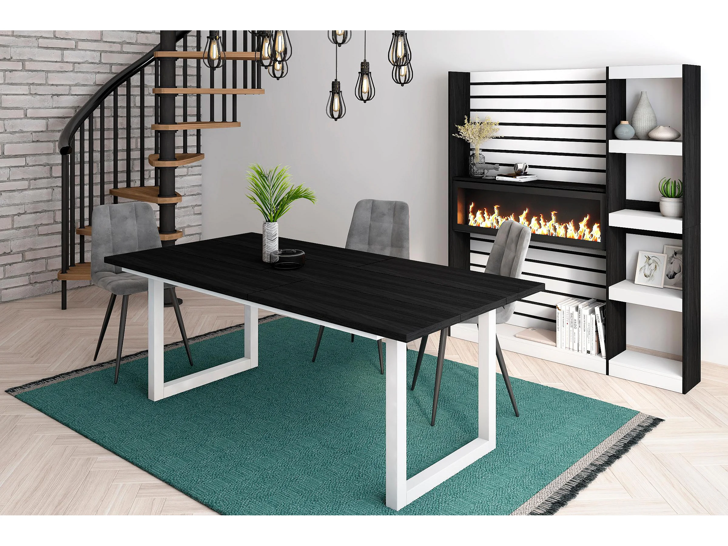 Table à manger, 10 personnes, 194x90x75cm, Robuste et stable, Noir, Style industriel