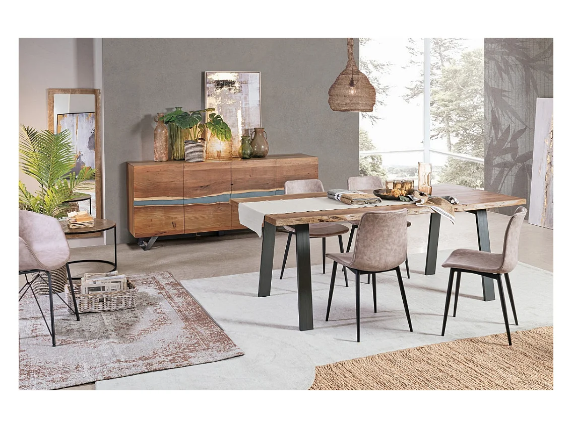 Table à manger bois d'acacia et pieds acier noir Amaly 200cm