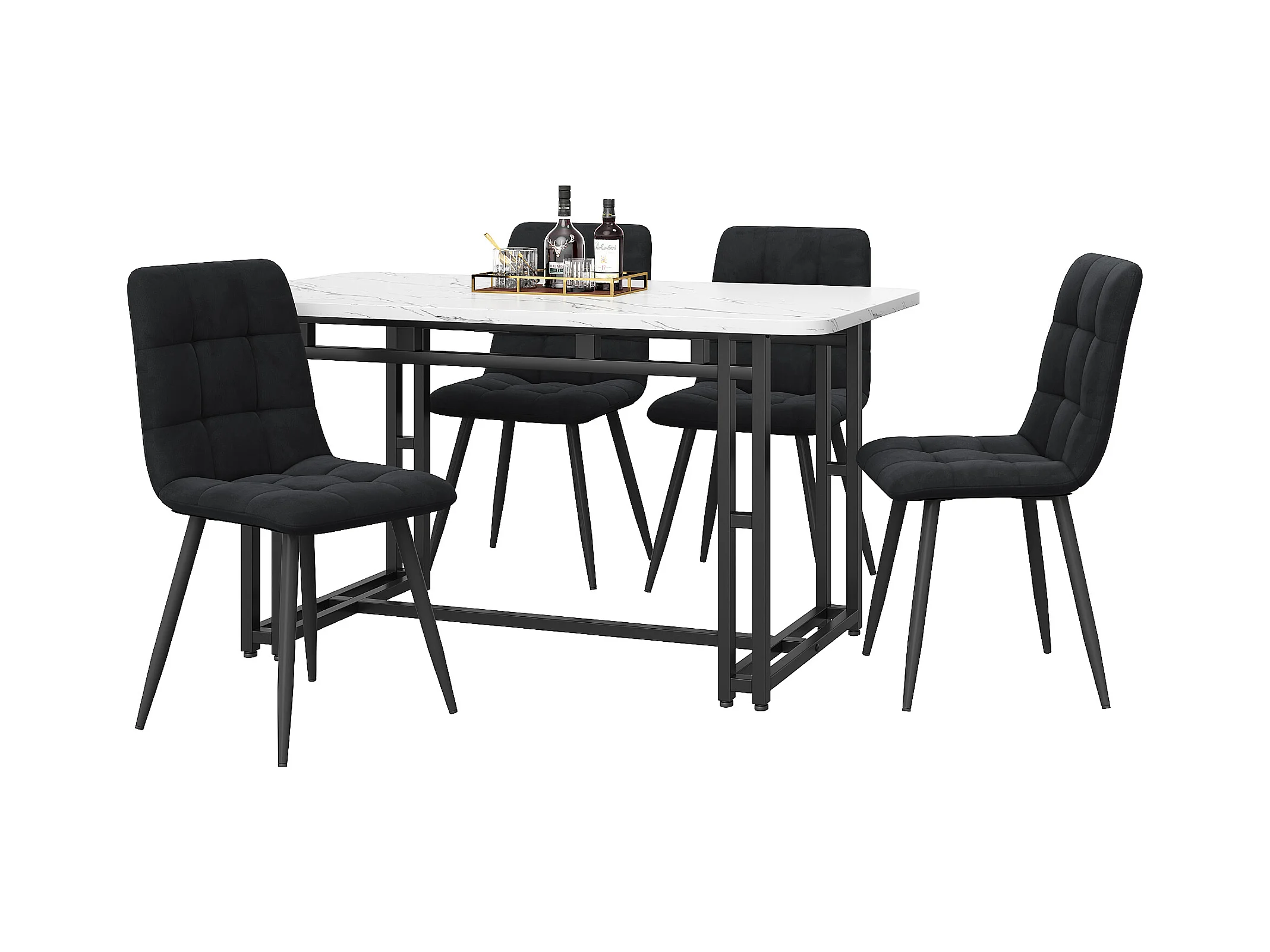 Lot de 4 Chaises de Salle à Manger avec Table, 120x70 cm, Design Moderne, MDF, Métal, Noir, Gris