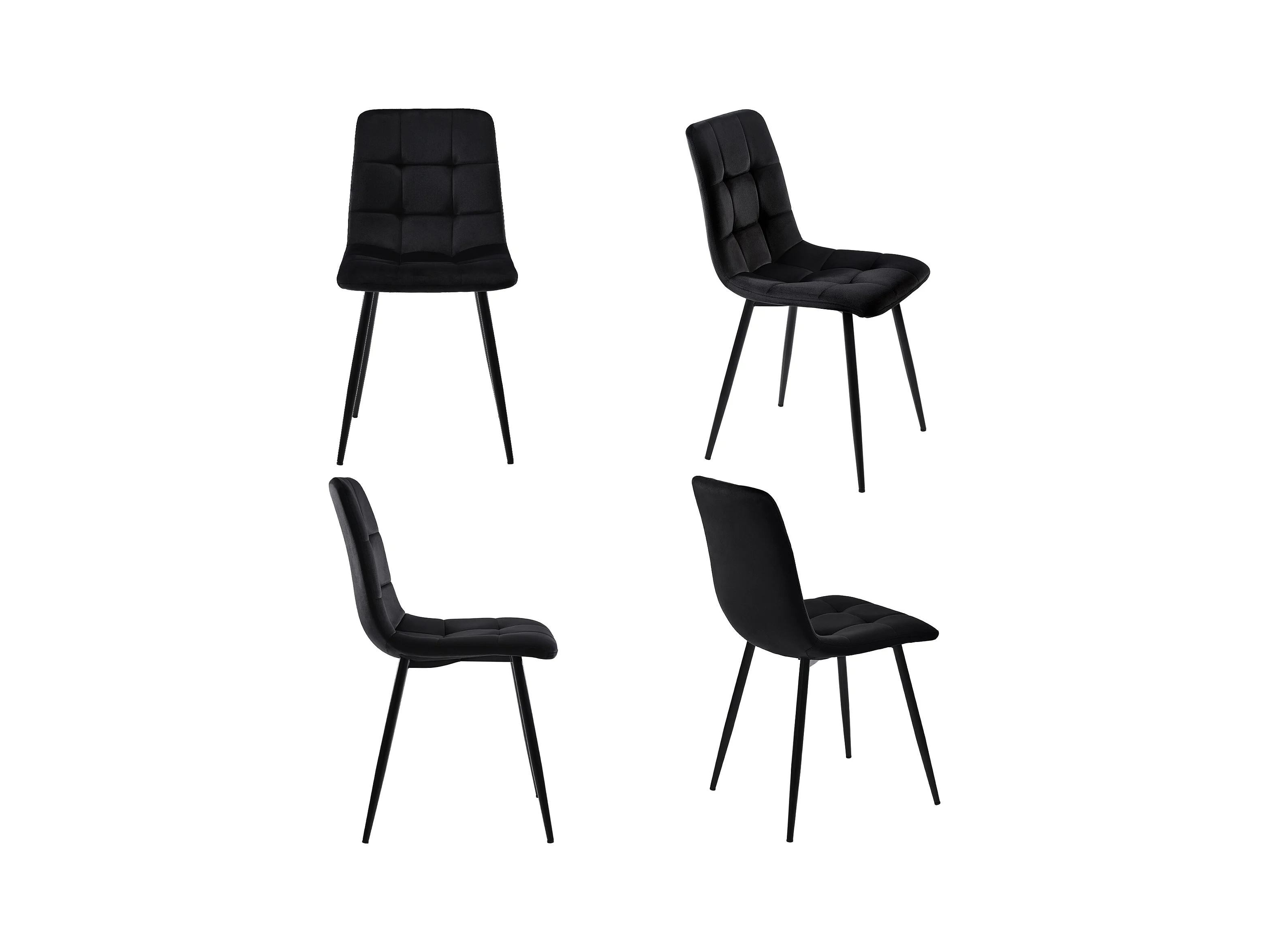 Ensemble de salle à manger 5 pièces, table ronde en marbre + 4 chaises en velours noir, pieds métalliques dorés (50 x 50 x 75 cm)
