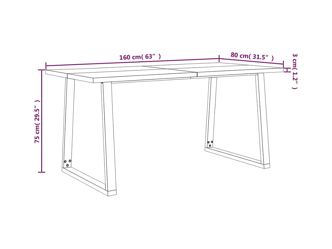Table à manger 160x80x75 cm bois d'acacia solide à bord vif